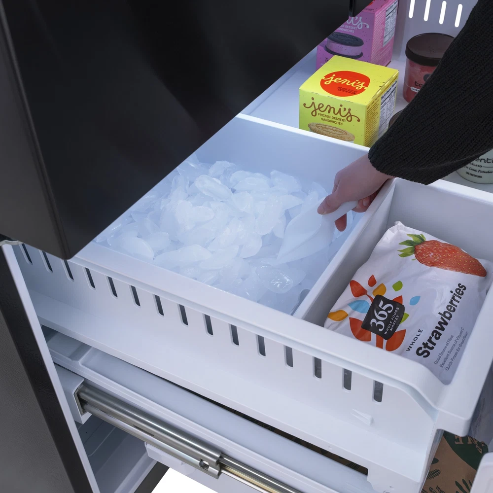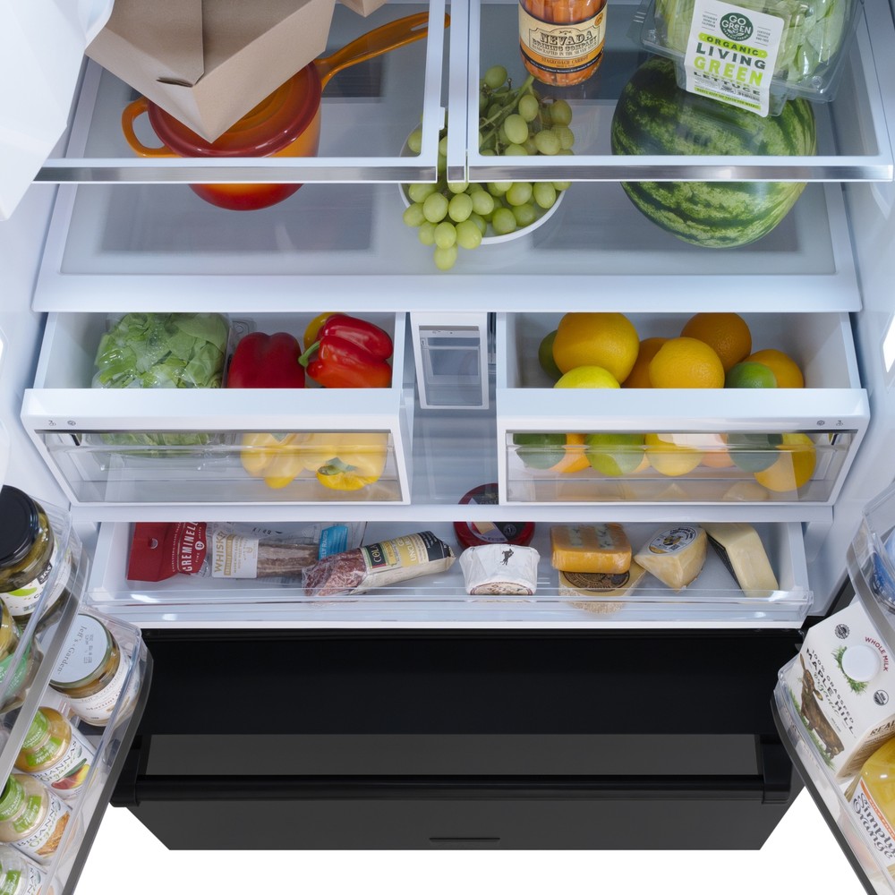 HUGE SAVINGS ON OPEN BOX ITEMS.... ALL OPEN BOX ITEMS HAVE BEEN THOROUGHLY INSPECTED. GREEN LABELED Open box items ARE NEW AND will have all the hardware included AND may have been repackaged. MOST ITEMS SHOW NO DAMAGES WHATSOEVER HOWEVER, They could have light scuffing or small dents that will likely not be visible once installed as they are on the back or sides of the units. THIS IS NOT A GUARANTEE BUT LIKELY. All sales are final unless the item received is grossly misrepresented. If there are any issues with your item please reach out immediately. You are purchasing a NEW open box item to save money. It will be AN OPEN BOX ITEM AND will be a guaranteed value. If you would like actual photos of the item being shipped please send a message. Items cannot be held until purchased PRODUCT DESCRIPTION HUGE SAVINGS ON OPEN BOX ITEMS.... ALL OPEN BOX ITEMS HAVE BEEN THOROUGHLY INSPECTED. GREEN LABELED Open box items ARE NEW AND will have all the hardware included AND may have been repackaged. MOST ITEMS SHOW NO DAMAGES WHATSOEVER HOWEVER, They could have light scuffing or small dents that will likely not be visible once installed as they are on the back or sides of the units. THIS IS NOT A GUARANTEE BUT LIKELY. All sales are final unless the item received is grossly misrepresented. If there are any issues with your item please reach out immediately. You are purchasing a NEW open box item to save money. It will be AN OPEN BOX ITEM AND will be a guaranteed value. If you would like actual photos of the item being shipped please send a message. Items cannot be held until purchased Luxury isn’t meant to be desired — it’s meant to be attainable. The ZLINE 36 in. 28.9 cu. ft. Standard-Depth French Door External Water Dispenser Refrigerator with Dual Ice Maker in Black Stainless Steel (RSM-W-36-BS) features a state-of-the-art cooling system, a professional built-in water and ice dispenser, and an expansive interior designed to store more items than ever before. Elevate your kitchen to a modern, luxurious style while preserving more space for what matters. This refrigerator includes the following features: Standard-Depth Design - Enhance your home with a standard-depth refrigerator that complements any kitchen design with increased interior capacity Black Stainless Finish - Minimize cleaning with ZLINE’s fingerprint-resistant sleek and stunning black stainless steel finish Spacious Capacity - Easily organize items with an 18.5 cu. ft. refrigeration compartment and 10.4 cu. ft. freezer compartment — totaling 28.9 cu. ft. of storage capability External Water and Ice Dispenser - Deliver fresh filtered water and crushed or cubed ice from a sleek in-door dispenser that fits containers up to 10 in. tall Dual Ice Makers - Produce nearly 7 pounds of ice daily — 4 pounds in the primary in-door ice maker and 2.8 pounds in the secondary ice maker inside the freezer Super Cool and Super Freeze Modes - Save time and quickly chill food with unique functions that automatically set the fridge temperature to 34°F and freezer to -7°F Digital LED Display - Adjust temperatures, engage a child lock, and navigate multiple menu items with an ADA-accessible LED control panel located on the refrigerator door Spill-Resistant Glass Shelves - Effortlessly store items in the refrigerator on 4 spill-resistant adjustable glass shelves, 1 of which is foldable to allow more flexibility Dual Crisper Drawers - Enjoy best-in-class freshness for fruits and vegetables with a pair of half-width humidity-controlled crisper drawers Full-Width Pantry Drawer - A full-width pantry drawer provides substantial storage for produce, meats, and other food items you want to keep fresher longer 8 LED Lights - Fully illuminate your appliance with 5 bright built-in LED lights in the refrigerator, 1 in the freezer, and 2 more in the water and ice dispenser Dual Cooling - Separate refrigerator and freezer systems provide efficient cooling while ensuring air and odors are not mixed between compartments Adjustable Door Bins - Store condiments, beverages, and other taller items inside 8 durable plastic bins, with 4 on each door Full-Extension Freezer Drawers - Comfortably store frozen items of multiple shapes and sizes inside 2 spacious full-width freezer drawers Adjustable Temperatures - Create the perfect cooling environment with fridge temperatures ranging from 34°F to 44°F and freezer temperatures from -7°F to 7°F Water Filter - A simple-to-replace water filter is located at the bottom of the refrigerator compartment to accommodate ADA access Sabbath Mode - A convenient Sabbath Mode conserves energy by deactivating interior lights and control panel functions with doors open Quiet Noise Level - Enjoy peace of mind day or night with an ultra-low noise rating of 43 decibels ENERGY STAR® Rated - Superior insulation coupled with a top-tier sealed cooling system saves you money while maximizing energy efficiency Manufacturer Warranty - 1-year parts and labor, and a 5-year parts-only warranty on the sealed cooling system, including compressor, evaporator coil, condenser coil, and filter drier Dimensions: 35.75 in. W x 34 in. D x 69.88 in. H Cutout Dimensions: 37.25 in. W x 31.5 in. D x 71.88 H Depth with Handles: 36.75 in. Depth with Door Open: 48.13 in. Total Capacity: 28.9 cu. ft Fridge Capacity: 18.54 cu. ft Freezer Capacity: 10.35 cu. ft Ice Maker: Yes Ice Maker Types: Dual Automatic Ice Maker Ice Amount Per Day: 6.83 lbs Water Dispenser: Yes Flow rate for Water Dispenser: .4 GPM Fridge Lights: 5 Energy Star: Yes Energy Consumption (kWh/year) 743 Voltage: 120V/60Hz Amps: 3 Noise Level: 43 Decibels Humidity-Controlled Crispers: 2 Freezer Drawer Bins: 2- Pull Out Drawers Door Shelves: 4 Number of Fridge Shelves: 4 Mount Type: Freestanding Depth Type: Standard Depth Certifications: UL Listed, ENERGY STAR Certified Material: BLACK Stainless Steel Warranty 1 year parts and service and 5 year parts on sealed system, including compressor, evapora