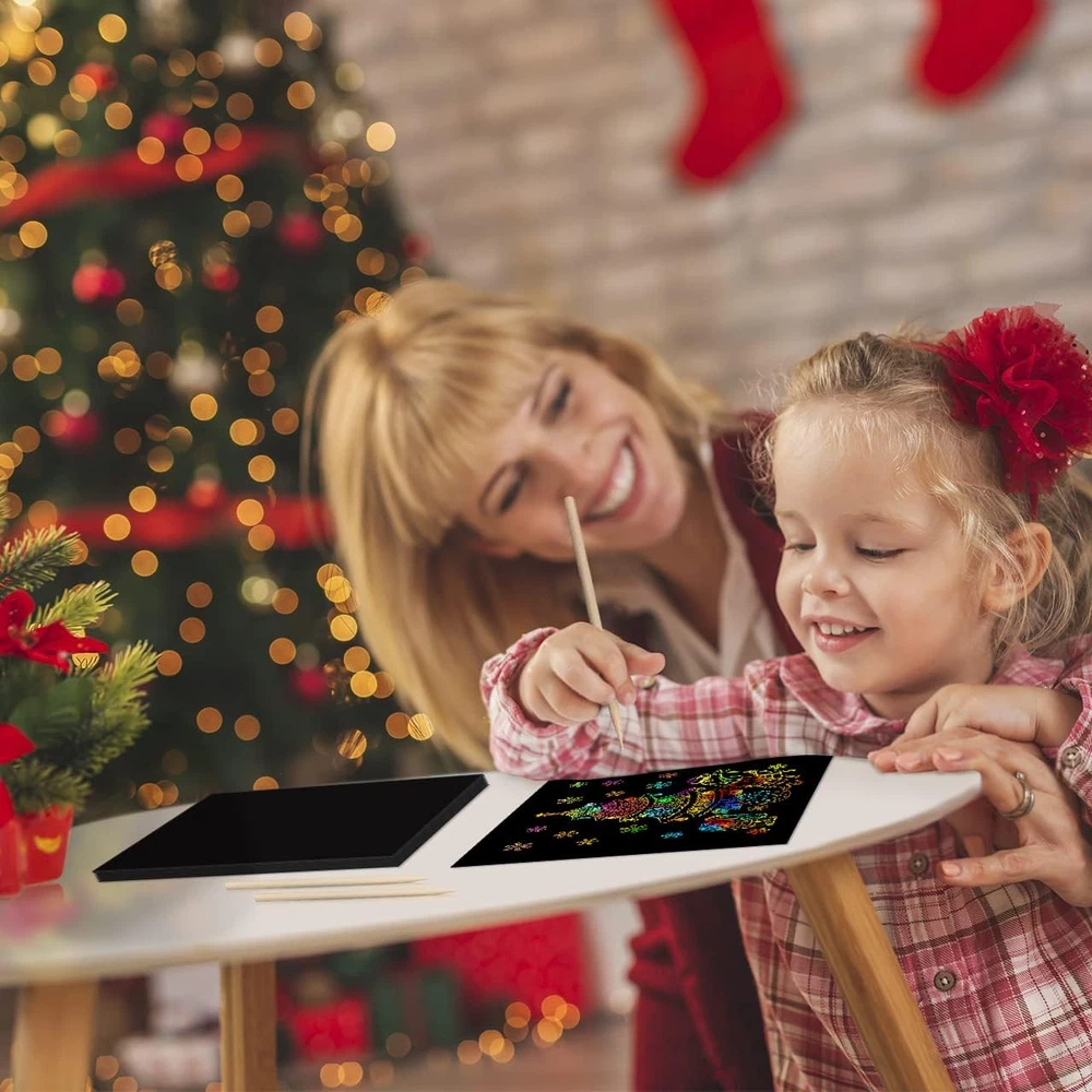 🌈🍒Great Value Scratch Paper Art Set: 🍓Scratch magic paper come with 50 sheets scratch sheets and 5 wooden stylus can meet your needs. you can use the stylus to scratch away to reveal the beautiful rainbow background. Let kids make outstanding handmade artworks, and keep boys and girls busy with fun DIY kids art craft project 🌈🍒Safe and Durable Material: 🍓Rainbow scratch paper art are made of premium paper and are safe and tasteless, not easy to tear up, durable enough for long time use and safe to create colorful picture designs. Kids scratch paper is a wonderful activity that allows children to paint, play games, and practice letters with parents. 🌈🍒Fun & Creative for DIY: 🍓Cut out your beautiful designs with this magic scratch art as Easter gifts eggs, bookmarks, gift tags, hanging decorations, scrapbooks and other scratch crafts projects, ideal for festival decorations, family fun day, art class, school projects and day cares on the holiday. Rainbow paper craft kit can improve your drawing, imagination and creativity skills, add more fun for you 🌈🍒The Perfect Scratch Gift: 🍓This rainbow sketch pad is suitable as a birthday gift and festival holiday gift for 3 years old up boys and girls. Perfect gift for children at Christmas, Children's Day, Valentine's Day, Mother's Day, Father's day, Halloween and Easter craft gifts for children to develop painting interests and skills 🌈🍒Wide Application for Colorful Life: 🍓Kids arts crafts use for multiple purposes, doodle, jot notes, create cards, sketch, draw, trace and more. This girls toys art makes an excellent art supplies for kids activity or grown-up artists. Throw this toddler craft set in your backpack, bag or even your pocket and create whenever inspiration strikes Product Description 1. Simple to Use & Easy to Draw Just use the wooden styluses included to easily scratch away the black film to reveal the beautiful rainbow colors! Kids can use the scratch off doodle pad to jot down notes, etch doodles, and create cool illustrations and designs 2. Delightful Craft Makes an excellent children art supplies and grown-up artists! Immerse your kids in this delightful black paper scratch pad design away from e-sports games. Inspire your toddler to create physical representations of their imagination, helping encourage communication skills. 3. High Quality Scratch Off Paper Art: Made of thick paper and won't being easily torn. This scratch and sketch paper is sufficient in quantity of various in kinds, suitable for you to use or send to others as a novel gifts Gift for Your Kids Christmas Halloween Birthday Children's Day No Messy, NO Terrible Smell Art Paper A Creative way to develop your kid's drawing and painting skills! This rainbow scratch drawing paper will be a nice gift for your preschool kids who love to draw and paint. With this magic drawing art kit, it enables your kids draw at the board with wooden stylus, no more stain and mess. Easy to clean and won't dirty kid's hands, your kids could create their own painting over and over again with their endless imagination. Feature of Our Fun Creativity Paper Kit Safe & Nontoxic Material Easy to clean and won't dirty No Messy & No Odd Flavor Good Quality & Thick Paper Virtually everyone has tried drawing with paint before, but have you heard of rainbow scratch paper art? This draw book is made of good quality & thick paper, won't fade & deform easily that's allow your kids fun for it with a long period No Toxic Powder, Safe & Clean Our rainbow art papers are made of thick, safe & clean paper material, no toxic and no terrible smell. These scratch rainbow art papers no terrible flavor & easy to use that allows your kids spend their time to draw and create their masterpieces. Colorful & Shiny Art Set These cute papers are cute and perfect size for your little kids who can use it to create some pretty drawings with different color. Excellent for everyday fun or a rainy day. Want to turn 'me' time into 'we' time? Let's scratch you a picture! Arts and crafts for girls is one of the best activities to help toddlers and preschoolers develop essential communication and social skills. Help your little artists express their imagination