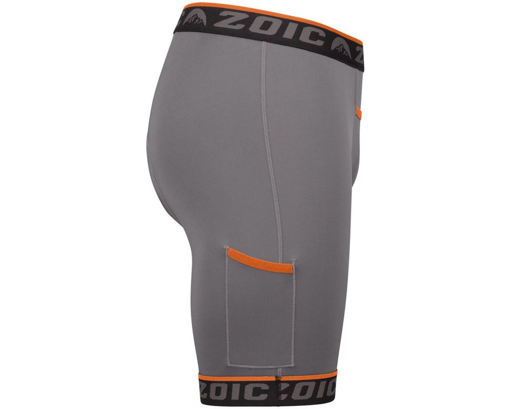 The ZOIC Premium Liner features a super soft Italian-made chamois, Veloce from Elastic Interface, constructed of multi-level ergonomic foam with 4-way stretch and advanced moisture-wicking properties. ZOIC's revolutionary Quick Release Fly with its horizontal design allows you to stop, drop, and roll whenever nature calls. A Quick Draw Pocket provides a handy place to stash a bar or gel for fast refueling, perfect when you want to streamline your profile for shorter rides or race day optimization. Wear ZOIC padded cycling liners to make any short a bike short. These inner shorts provide cushion and comfort for bike rides of any duration. ZOIC cycling liners are categorized by ride time, based upon thickness of the chamois pad and how soft or firm the foam is, to help you choose the liner you need. The Premium Liner has soft cushioning and is recommended for rides lasting 3 hours. Features: Spandex fabric provides stretch, breathability, and wicking Revolutionary Quick Relief Fly Quick Draw Pocket on the right thigh, ideal for bars & gels Reverse stitching places seams away from the body to reduce chafing Plush elastic on waistband and leg openings is soft against the skin Tagless labels for a clean fit Elastic Interface Veloce pad Dual density foam provides soft cushioning 4-way stretch for freedom of movement Multi-level profile for an anatomic fit Chamois Made in Italy Specifications: Gender: Men Inseam: 9" Fabric: Spandex Pockets: Yes Color: Grey About Us | View Store