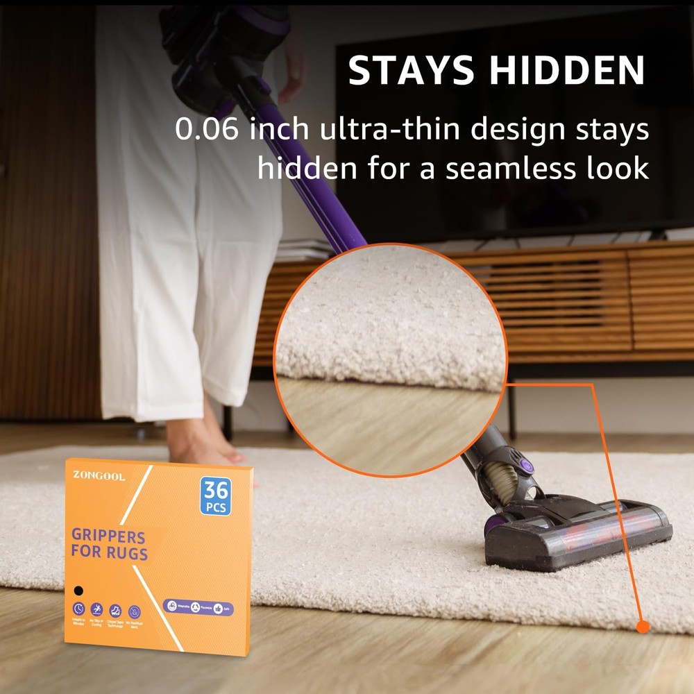 ZONGOOL 36 PCS Rug Tape, Reusable Washable Carpet Double 36PCS, Black Description Features: NON SLIP AND CURLING: Slippery rugs are dangerous in any home. ZONGOOL rug tape are working on preventing the rug sliding or rug corners curling, working for any shape of your rugs indoors or outdoors, making your carpet hold down and keep it in place. Voiding slipping accidents and properly solve annoying rug problems EASY INSTALL: This rug pad includes 36 long pieces. It is enough to be used at all of rugs and mats. They are easy to apply, they're labeled “A” and “B” for easy in applying to corners. The rug stays in place while the carpet receives the impact of external force. By using this rug pad, all your rugs will looks more elegant and tidy WASHABLE AND REUSABLE: Still bothered by those cheap disposable non-slip tapes? You can wipe out this anti-slip carpet tape dirt from “on floor” side with wet tissue or washing with carpet together then airing it to refresh stickiness. The ZONGOOL non-slip carpet tape can serve you again & again NO RESIDUE AND DAMAGE: This rug stoppers designed by premium updated adhesive technology, without the residue of the paste when removed it, you don’t need to worry about the damage for your floor, please take it easy to use it on hardwood floors, tile floors, laminate, marble, concrete, rubber, wall etc NOTE: Better get these rugs stickers and everything will be fixed quickly. If you need to remove the ruggies, pick the grips up with rug together from the floor first, then moisten the grippers for rugs, pull it slowly so that your carpet would not be damaged Product Details: Handling We will ship all orders within 1 business day of payment. Delivery We Do Not Ship Outside of the Continental US. Return Policy All items qualify for returns within 30 days of receipt. Buyer is responsible for return shipping on any item that is not damaged. Feedback We take our reputation seriously, we buy and sell online, so we understand the value of trust. If you are unsatisfied with your order, please contact us and we will work with you to resolve it to your satisfaction.