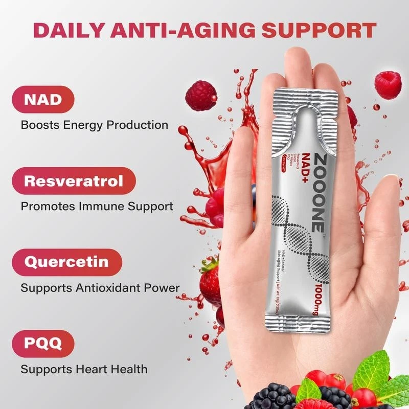The ZOOONE 1000mg NAD+ Berry Flavor Drink Mix is a nutrient-rich supplement designed to support skin aging and provide energy. With a focus on vitamins and minerals, this drink mix offers a convenient way to replenish essential nutrients that help maintain skin health and overall well-being. The berry flavor adds a pleasant taste to the mix, making it more appealing for regular consumption. The product is formulated to be easy to use, making it a convenient choice for those looking to support their skin and energy levels.