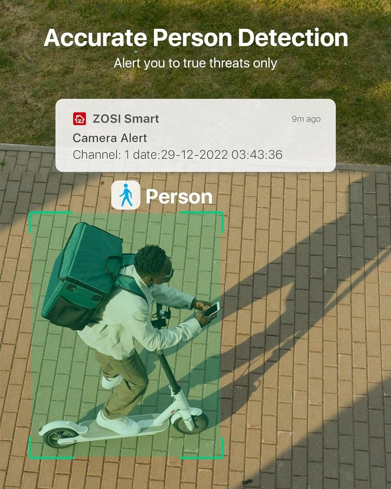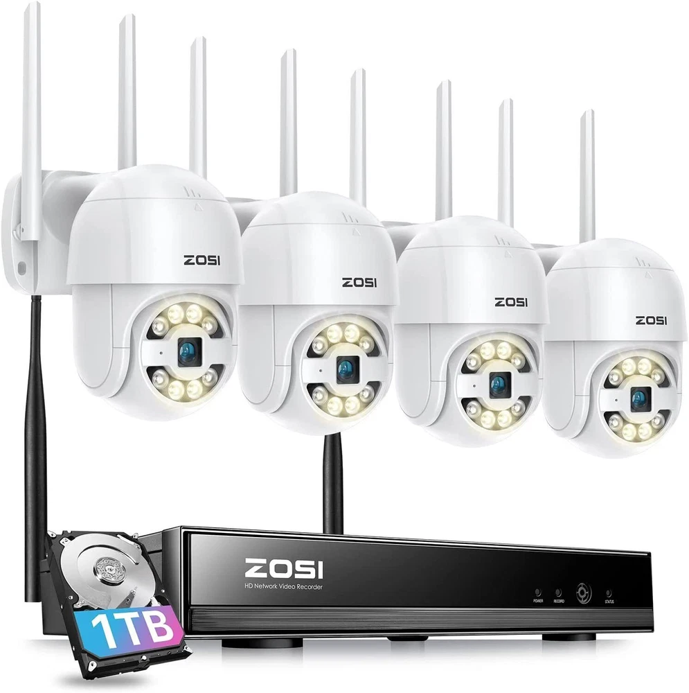 2K Super HD,See Things Clearly 3MP Resolution camera,super HD image,let you see the every details of the monitoring clearly on the ZOSI Smart Phone APP. Smart & Active Deterrence The camera detects humans and activates spotlight and siren alerts to send strangers running. See, Hear and Talk Remotely Use two-way audio to respond to guests or warn off the unwanted from anywhere. On Guard Rain or Shine IP66 weatherproof casing makes it tough enough to withstand harsh weather conditions. Easy Live View & Playback Get instant access and control to your cameras via the free Zosi Smart App/AVSS Client any time, anywhere, from any device. Secure Storage & Reliable Recording With built-in 1TB HDD and expandable storage up to 8TB, you can have all the critical moments stored securely for later playback. Customize Your Security System This camera system can be expanded to 8-camera kit, so you can add more compatible ZOSI WiFi cameras (ZG2893M/ZG3063M) to meet your security needs. High-Gain 5dBi Dual Antenna The 5dBi dual antenna can effectively enhance wall penetration and anti-interference performance, providing strong and stable WiFi signal. Over-the-Air Technology OTA Technology supports directly upgrading the NVR system through the server, one click to realize the program upgrade. Save Storage Space H.265+ plus AVBR video coding compresses video file sizes 50% more efficiently than H.264, saving you lots of hard drive space. On Mar 21, 2023 at 02:32:13 PDT, seller added the following information: