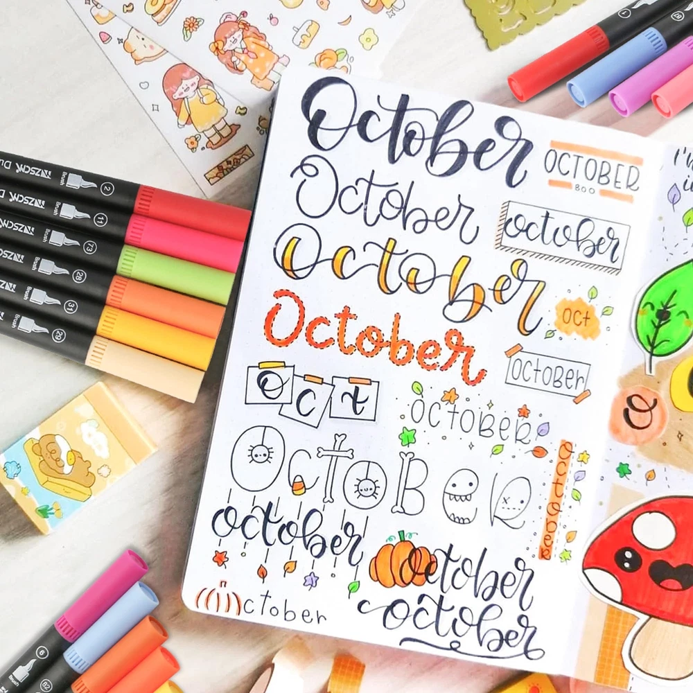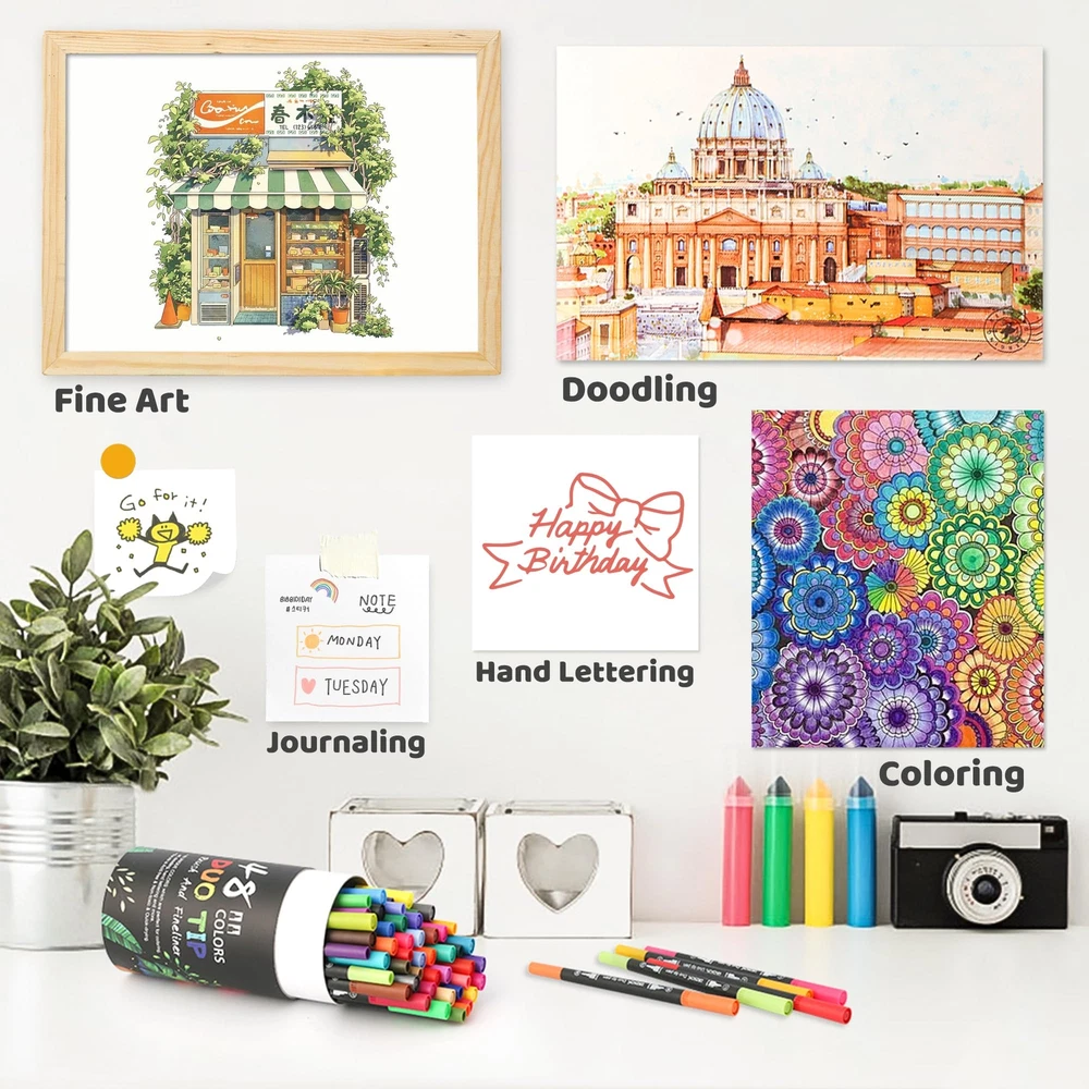ZSCM 48 Colors Duo Tip Brush Markers Art Pen Set, Artist Fine and Brush Tip Colored Pens, for Adult Coloring Books Christmas Cards Drawing, Note taking Lettering Calligraphy Journaling DURABLE AND LONG LASTING: ZSCM 48 colors Duo tip brush markers 2 different tips: 0.4mm fine tip and 1-6mm brush tip, flexible and strudy. Fine tip is great for sketch outlining & thin lines and soft brush tip for shading and quickly color in large areas art project. Perfect brush marker set for your next masterpiece. 48 CLASSIC VIVID COLORS OPTIONS: This complete set of Duo Tip Pen art markers comes with a whopping 48 unique and vibrant color options to choose from, NO duplicate. Meet all you need for adult coloring books, drawing, coloring, sketching, doodling and just about anything else. SMOOTH WRITING, FAST DRYING: With nicely pigmented Water-based dye inks, odorless, no leak, non-toxic, and acid-free. colors can be dispersed and mixed with water. no need worrying about smudges and blotches,Those coloring book markers are completely non-toxic, and can be wash off easily with water. STAY NICE AND ORGANIZED GREAT GIFT: Our Duo tip marker pens organized in the included container! Wonderful Gift for Birthday, Graduation, Halloween, Christmas, Thanksgiving day or anyone who loves drawing, painting, sketching, writing, journaling, brush lettering, crafting, doodling, watercolor painting, illustrations. SERVICE PROMISE:Customer is our top priority. Please keep caps tight after every use. If you are not satisfied for any reason, please let us know and we will respond to you within 24 hours.