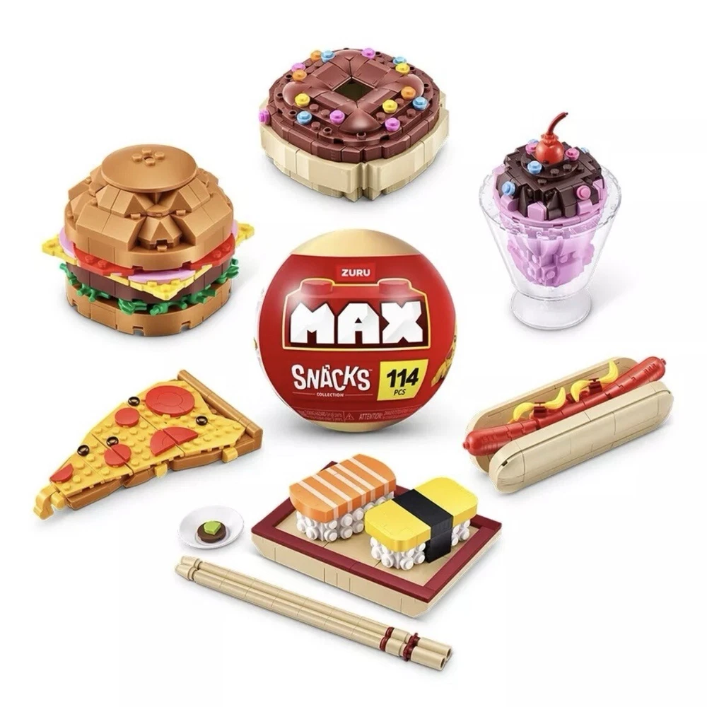 Zuru Max Snacks Collection Hot Dog Capsule, 170 pcs Brand new and ready to ship! Message with any questions. • COLLECT THEM ALL: 6 different snacks to collect including: Sushi, Pizza, Burger, Ice Cream Sundae, Hotdog and Doughnut. • COMPATIBLE WITH LEADING BRANDS: MAX Premium Bricks are compatible with leading brick brands, making them a seamless addition to any collection. • PERFECT GIFT: Perfect Gift for your snack loving friend, parent or family member who loves to build and collect. • PREMIUM VALUE: MAX Premium delivers top-quality bricks with a high piece count, providing exceptional value. • Up to 200 MAX Premium pieces in each capsule to build 1 Snack Design. Includes easy to follow instructions.