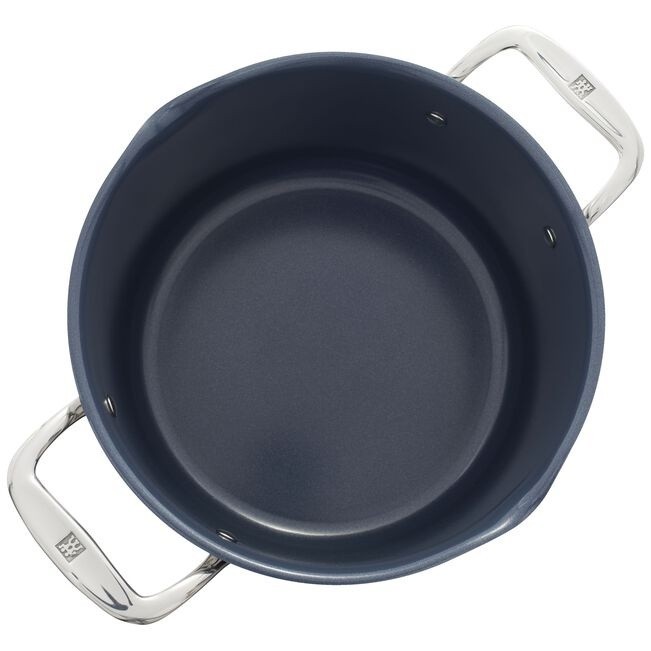 Description Engineered in Germany, Clad CFX nonstick cookware offers the same great even-heating benefits as uncoated stainless-steel cookware, coupled with unparalleled easy release. Simmer a seafood stew, cook a hearty meat chili, and braise pot roast to peak tenderness in the 6-quart Dutch oven that’s ideal for large-batch cooking. Enjoy excellent heat retention with the perfect-fit lid that provides energy-efficient insulation ZWILLING Clad CFX features Ceraforce XTREME ceramic nonstick, a revolutionary coating that is 50% longer lasting and 3x more durable than our previous nonstick. Safe to use with metal utensils, this durable coating is extremely scratch-resistant. Chef-friendly features include flared rims for mess-free pouring, comfortable v-shaped handles for easy maneuvering, and an induction compatible base. With this dishwasher-safe cookware you’ll enjoy quick release and easy clean up every time you cook. Sturdy clad construction with aluminum core heats up evenly Ceraforce XTREME ceramic nonstick coating is 50% longer lasting and 3x more durable than our previous nonstick. No PFAs were used to make this product Safe to use with metal utensils–10x more scratch resistant Flared rim provides clean and dripless pouring Comfortable stay-cool handles offer maximum maneuverability Oven safe to 400°F Compatible with all cooking surfaces, including induction Dishwasher safe