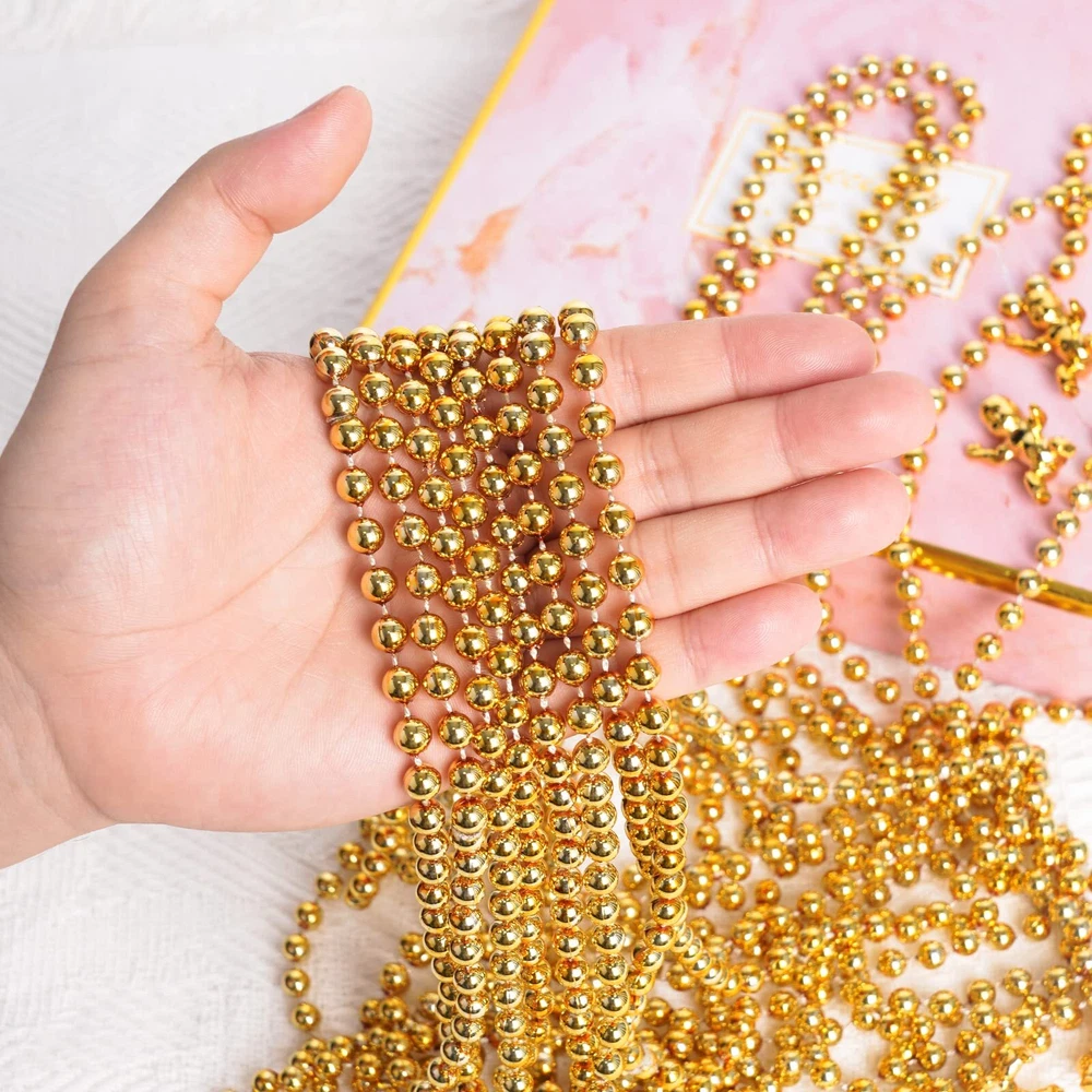 ZZYFGH 33'' 7mm St Patricks Day Beads Necklace, Mardi Gras Beads Necklace Bulk, Metallic Gold Beaded Necklace, Party Costume Necklace(12 Pcs) Carnival Party Favors: These colorful bead necklaces are the perfect accessory for Mardi Gras costumes and Parades. Can't Do Mardi Gras Party Without Beads Multiple Application: These plastic necklaces can not only be used as hanging New Year's decorations, Christmas dress up accessories, but also perfect for Halloween parties, Mardi Gras, Parades, costume parties, pirate theme parties to wear Suitable size: Each party costume necklace is 33 inches long and has 7mm beads that match your outfit well and are the right weight for carnival throwing Premium Material: Our beaded necklaces are mainly made of high quality plastic materials, which are not easy to fade and have metallic luster Package Include: 12 pieces of gold bead necklace bulk Shipping We offer FREE shipping on all orders! We use a selection of shipping services such as UPS, FedEx, USPS etc. We only ship to the lower 48 states, no APO/FPO addresses or PO Boxes allowed. Local pickups and combined shipping options are not provided at this time. Return You can return a product for up to 30 days from the date you purchased it. Any product you return must be in the same condition you received it and in the original packaging. Please keep the receipt. Payment We accept payment by any of the following methods: PayPal Please pay as soon as possible after winning an auction, as that will allow us to post your item to you sooner! Feedback Customer satisfaction is very important to us. If you have any problem with your order, please contact us and we will do our best to make you satisfied. Contact Us If you have any queries, please contact us via ebay. We usually respond within 24 hours on weekdays. Please visit our eBay store to check out other items for sale! Thank you for shopping at our store.