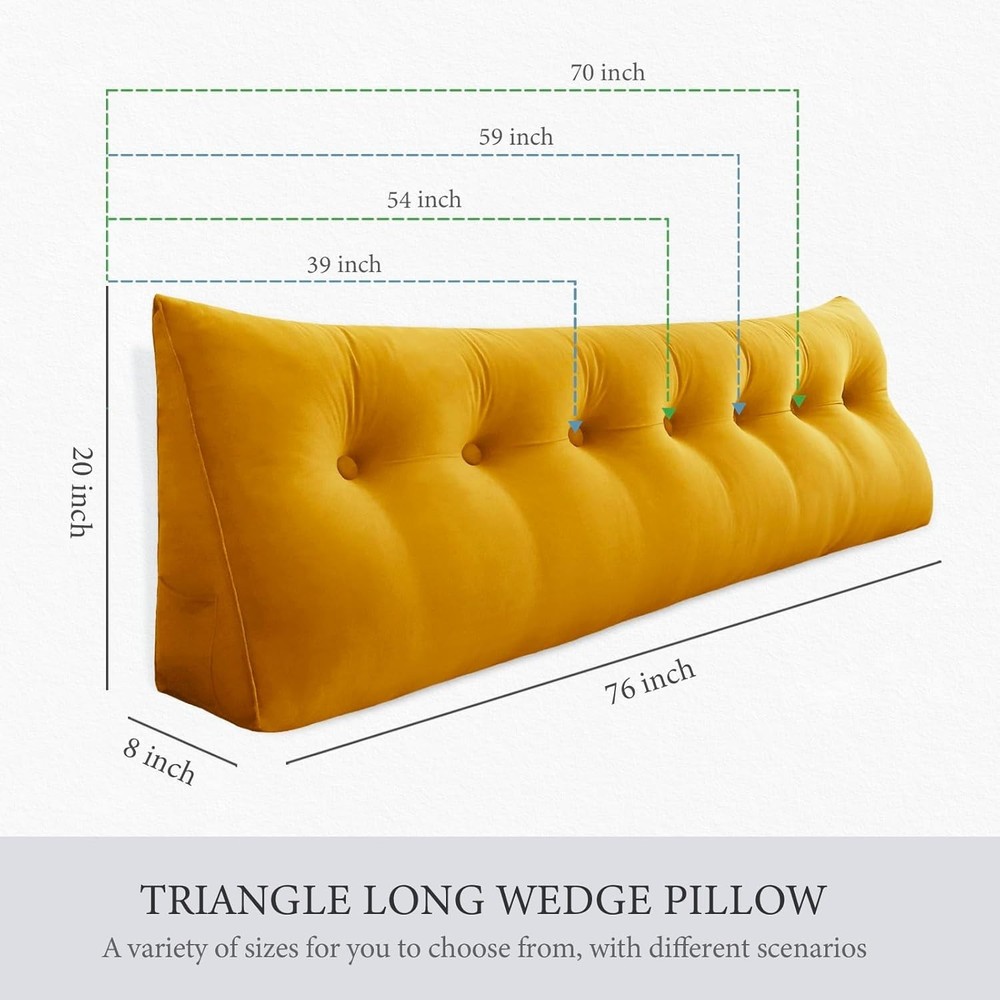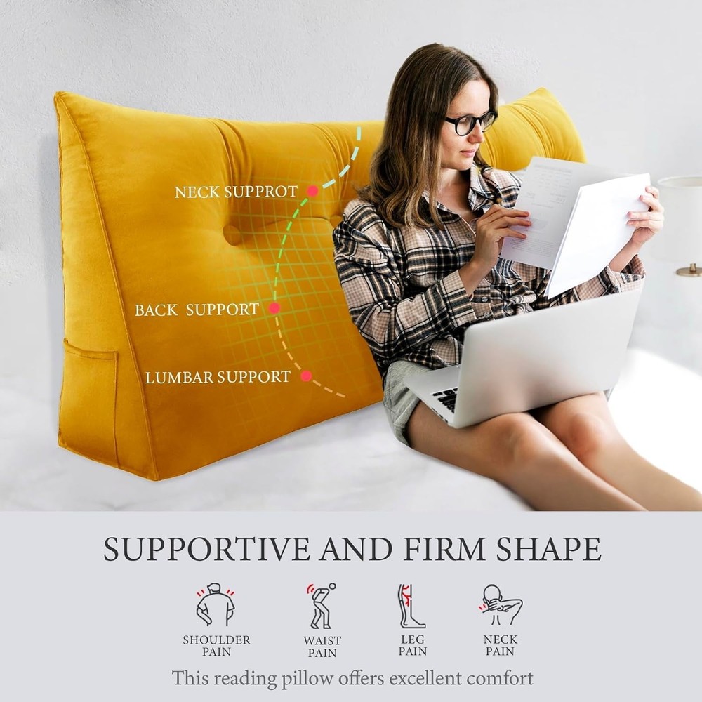 3 in 1 Large bolster Pillow: You can use the pillow upright as a back support headboard pillow for sitting in bed or lay it flat on the bed to use it as a large wedge pillow when sleeping on your back or side, or as a leg pillow to elevate your legs. If you want a large headboard pillow that provides support for both you and your spouse. It's an excellent alternative. Multifunctional Design: Some people use the triangle large cushion as a headboard pillow, while others use it as a bumper pillow, it's also can be a couch or daybed backrest bolster pillow. It's stylish as well as functional, making it an excellent addition to any bedroom. Superior Craftsmanship: The pillowcase is corduroy look which the composition is 100% polyester. our headboard pillow is breathable and comfortable enough to hold its shape and not lose its shape over time, A side pocket on each side allows you to slip your book or your phone. Easy to Wash: The reading pillow cover is attached to the pillow with buttons, and is easy to remove with a simple zipper. This makes its cleaning hassle free. Just remove the cover and do a quick machine wash to make your pillow look like new.