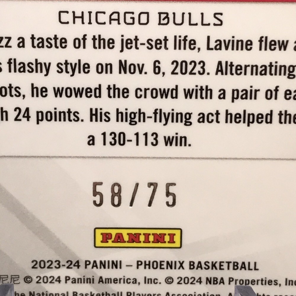 ZACH LAVINE 58/75 LAVA SP 2023-24 PHOENIX 275 BULLS. Condition is Ungraded. Shipped with USPS Ground Advantage.