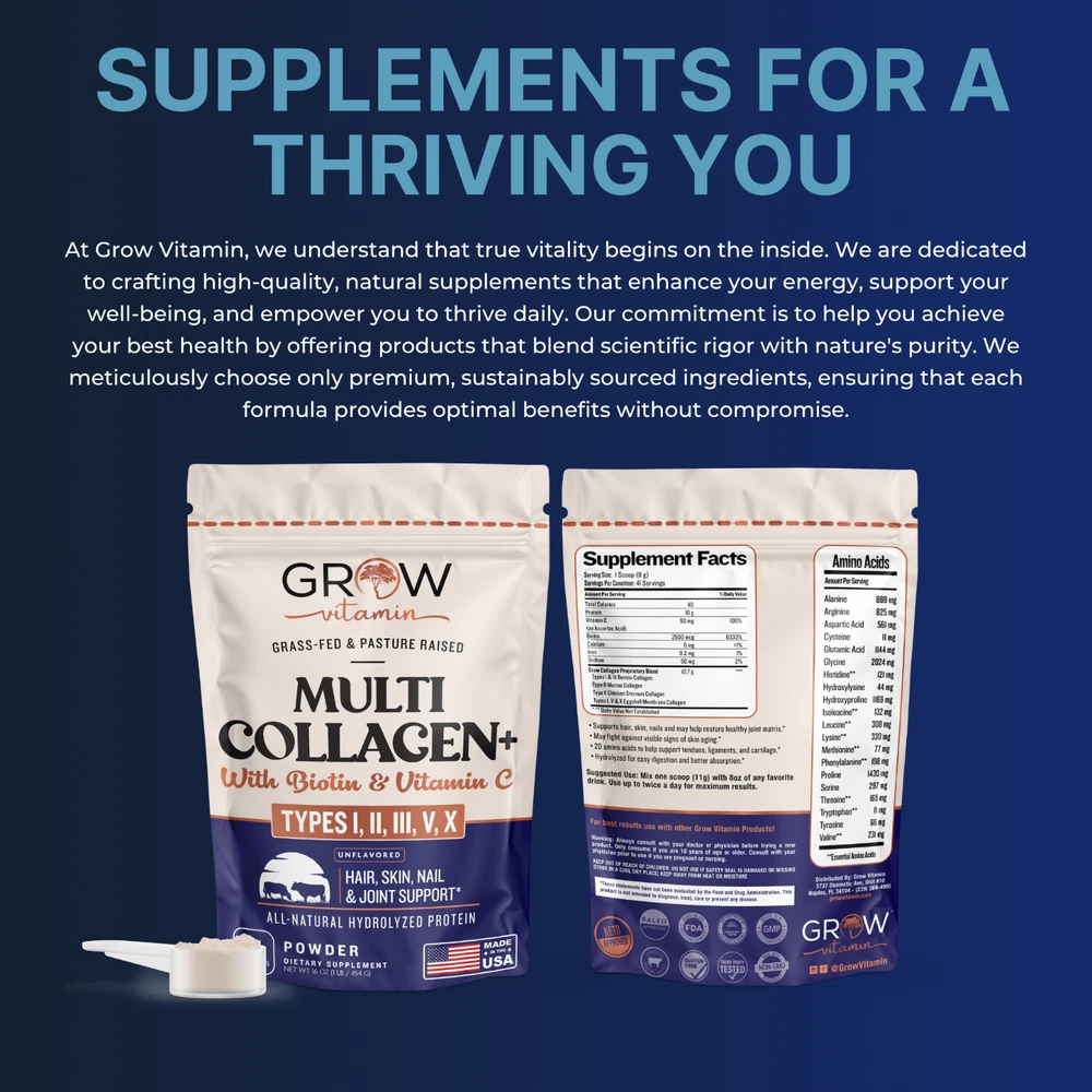 For a healthy you and a healthy lifestyle.Looking for a good solution to your overworked body and stressed skin? Why not try Collagen Peptide? Our product comes with NON-GMO, completely Gluten-Free, and is extracted from grass-fed and pasture raised cattle.The item also comes with ways to rejuvenate your skin effectively. With an unflavored and easy to mix design, you can never go wrong with as your ultimate choice. Our hydrolyzed collagen can provide you with many benefits that are distributed along your body, including: your tendinous muscles, tendons, skin, ligaments, joint cartilages, and mostly your bones.Therefore it is important that you be able to maximize this benefits in the easiest possible way, and what better way than to do it with our Hydrolyzed Collagen Peptide. The many benefits as you know come from an all-natural source making it perfect to include in your everyday diet. Why choose our Product? ✔ Fast Dissolving. ✔ High bioavailability. ✔ 100% Pure Collagen. ✔ Best value. ✔ No unnecessary Odor. ✔ With good and smooth taste. How to Use? collagen peptides are flavor and odor free and can be quickly dissolved into hot or cold liquids. Just add one scoop to your water, coffee, tea, juice, yogurt, or smoothie, etc.... Create it your own way easily! Storage Information: Don’t use if the seal is broken or missing. Make sure the cap is tightly sealed. Store away from heat and humidity. Keep out of reach of Children. PREMIUM QUALITY: Collagen is enzymatically processed to insure intact peptides property. Sourced from Pasture raised, grass-fed, Non-GMO, (Type I &III) 100% natural hydrolyzed collagen. Served with highly available protein and 18 amino acids to improve your overall wellness. Made in USA. FOR HEALTHY AND YOUTHFUL HAIR, SKIN, AND NAIL: Take 1 scoop of collagen peptides everyday to promote youthful-looking skin, non-drowsy, healthier hair, and strong nails.* 100% Grass Fed:Source from Pasture Raised, Grass-Fed, Kosher Friendly, Non-GMO cow bones with type I & III collagen. No added hormones, No additives, No dairy, No gluten, No soy, low sodium. HOW TO USE: hydrolyzed collagen peptide can quickly dissolve in hot and cold liquid, it's tasteless and odorless. Simply add one scoop of collagen peptide to coffee, milk, smoothie, juice, or water. Create it your own way. Safe for daily use. At , we maintain a strict quality assurance guideline to ensure that every order we produce fulfill customer expectations and represents leading standards.