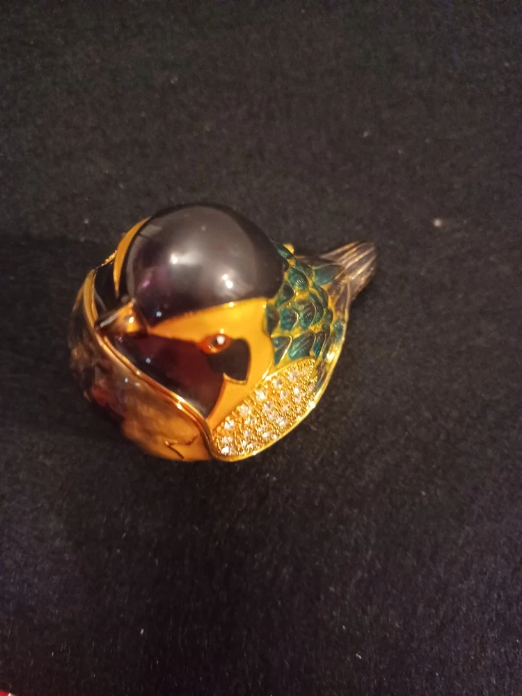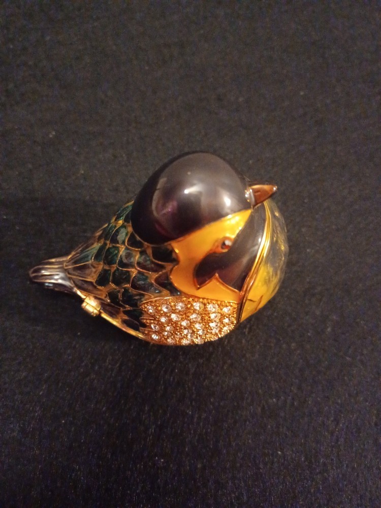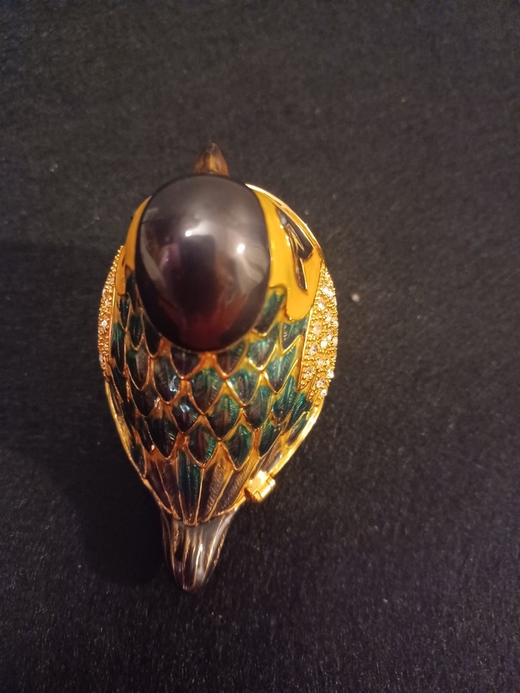 Zanzibar Green And Gold Bird Hinged Metal Enamel Rhinestone Trinket Box. Shipped with USPS Ground Advantage.
