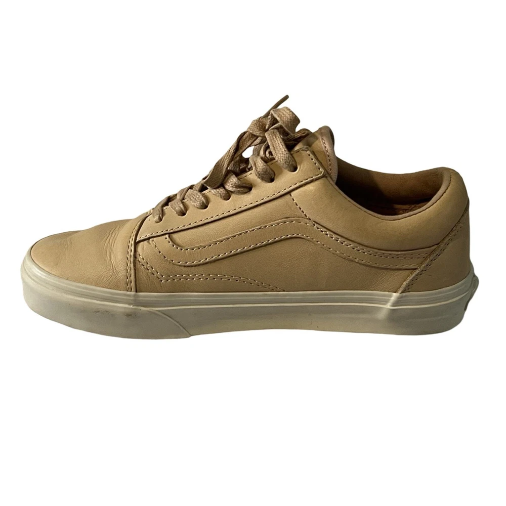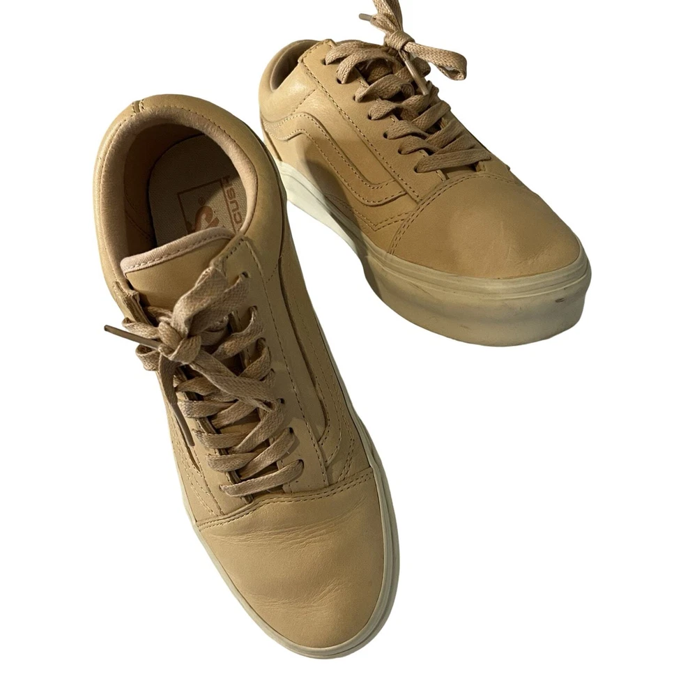 VANS Old Skool sneakers perfect for both men and women tan color with a classic VANS design upper material is made of high-quality leather perfect for everyday wear feature ultra-cush insoles. lace up, man-made sole ** all items stored in a smoke-free & pet free home ** please see photos for signs of wear