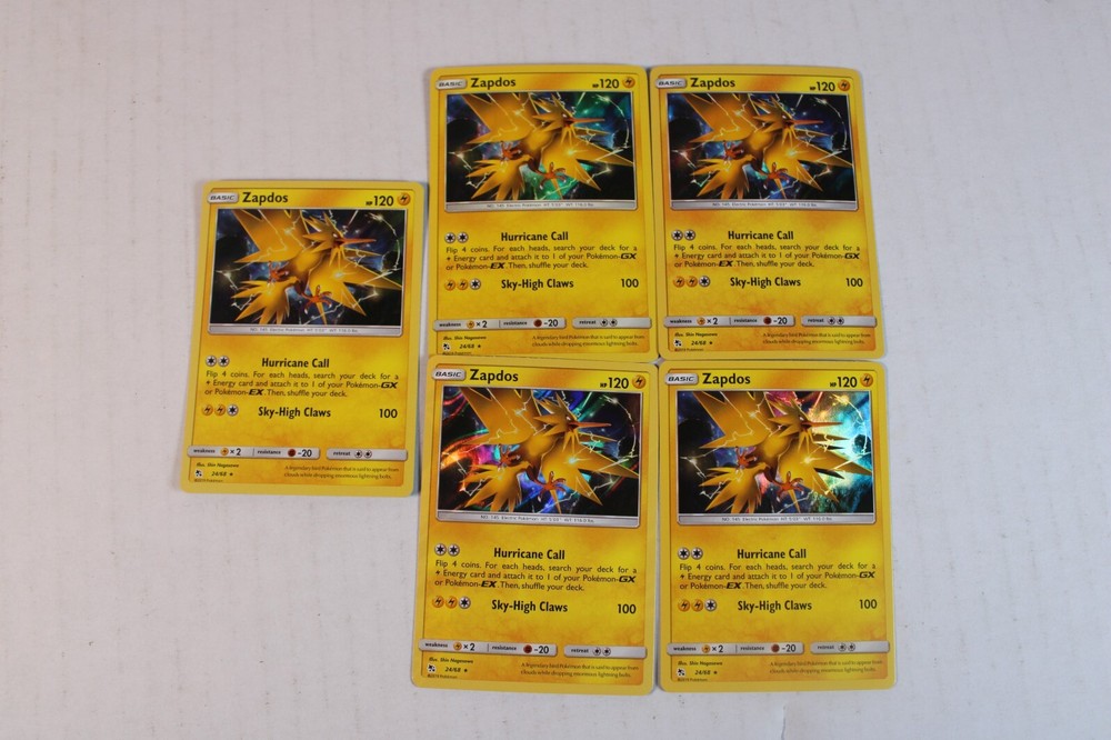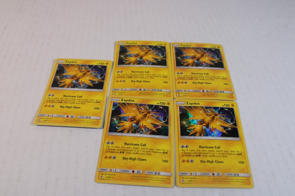 Listing Information: For Pokemon Card Lot Title: Zapdos 24/68 - Sun Moon - Hidden Fates - Holo - Pokemon Card - NM lot of 5 cards Condition: NM-M Preowned and ready for sale Please see pics as they are a part of the listing and message me with any questions >>>>>Vintage.NM.Olsk<<<<<