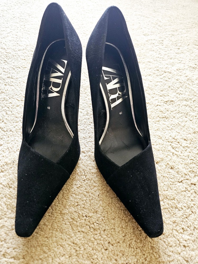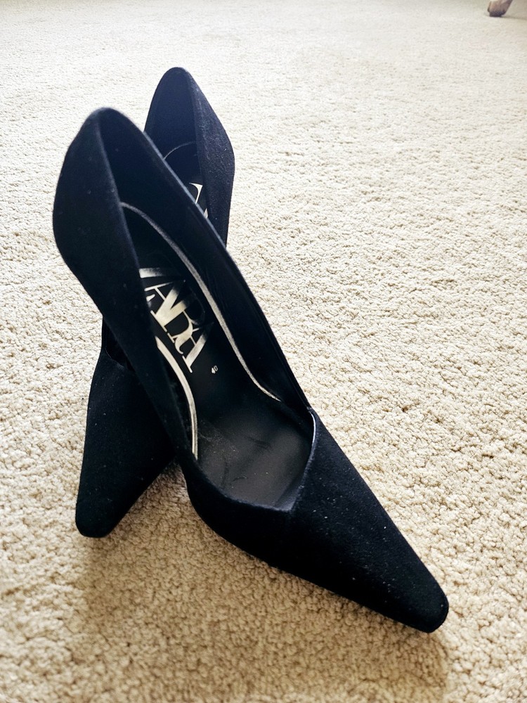 zara heel faux suede shoes. Size euro 40, US 9, Black solid. never worn., without box. Heels 3.9-4 in
