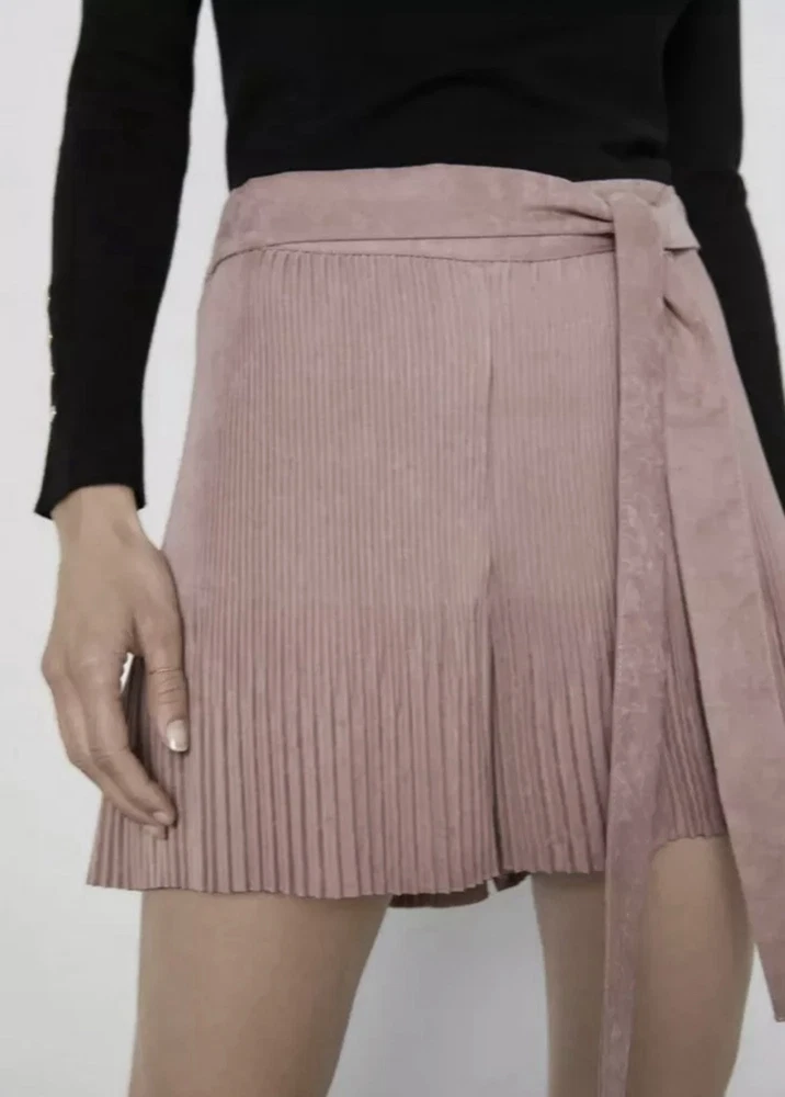 Zara Women's Dusky Pink Suede Dress Shorts with elasticated waistband. Eur M (10/12 roughly) please see attached pictures for approx size dimensions. Brand new without tags