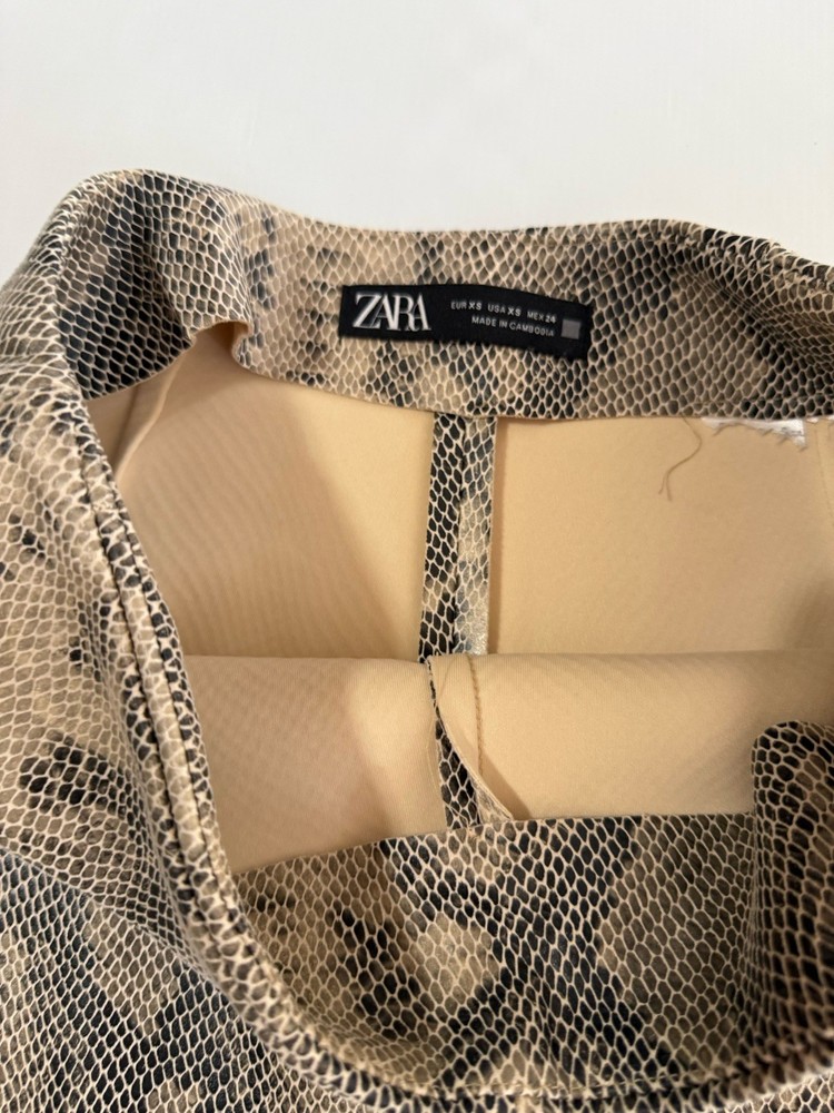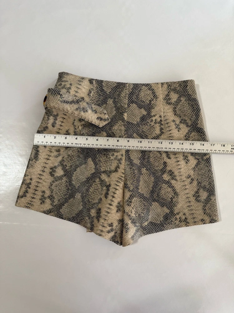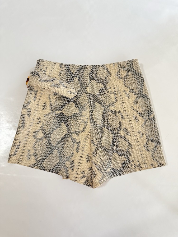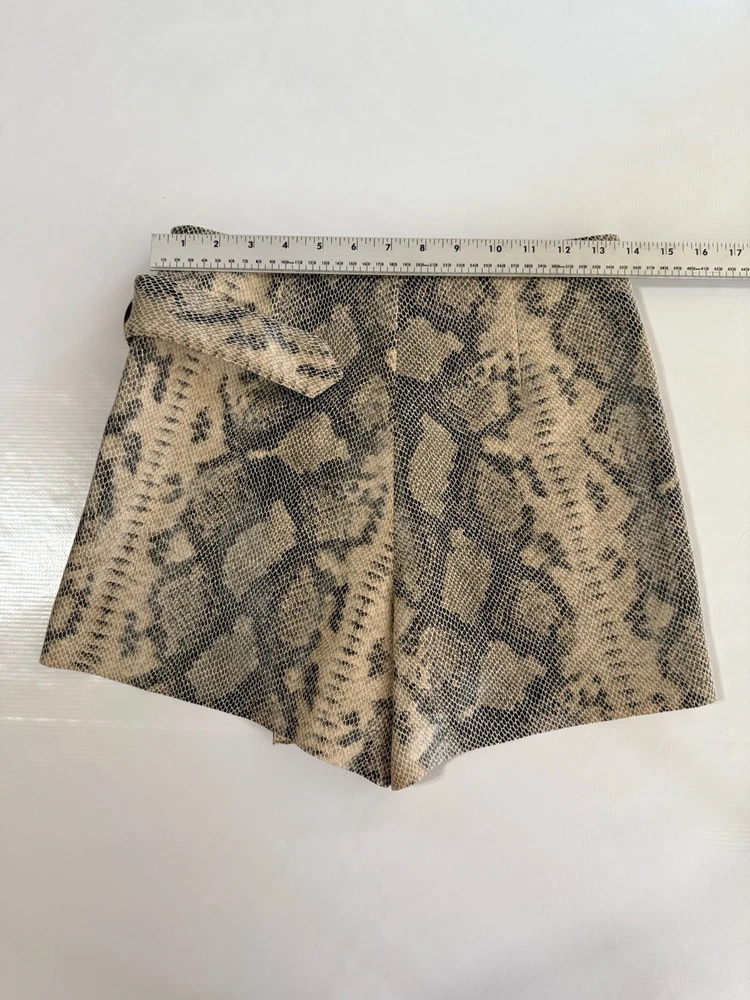 This Zara Women’s Mini Skirt Skort in snakeskin animal print size XS is a stylish and versatile piece perfect for various occasions such as travel, parties, or casual wear. The skirt features a zip closure, mid-rise, and a short length, making it a trendy addition to your wardrobe. Made of lightweight polyester satin fabric with accents like a buckle and zipper, this skirt is designed for comfort and fashion. Hand wash only to maintain its vibrant multicolor pattern and unique snake character theme. Condition of the item is Pre-Owned in great shape! Shipped asap by USPS ground advantage mail.