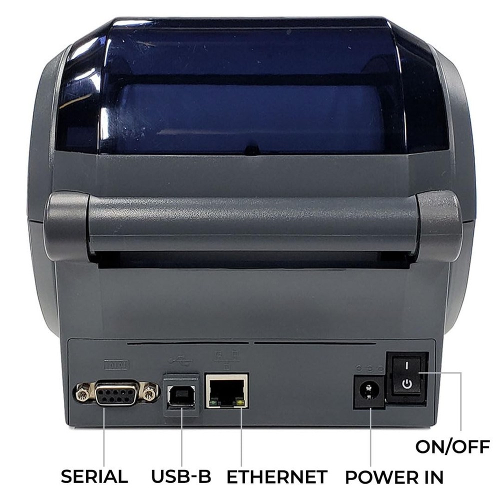 The Zebra GX420t Thermal Label Printer is a top-tier solution for all your labeling needs. Designed for efficiency and reliability, this printer is perfect for small businesses, shipping departments, and anyone in need of high-quality labels. The GX420t boasts a compact design, making it an excellent choice for desktop use without sacrificing performance. With its thermal transfer printing technology, you can expect crisp, clear labels that stand the test of time. One of the standout features of the Zebra GX420t is its versatility. Whether you need to print shipping labels, barcode labels, or product tags, this printer can handle it all. The GX420t supports a wide range of label sizes and types, ensuring you have the flexibility to meet any labeling requirement. Additionally, the Ethernet connectivity option allows for seamless integration into your existing network, making it easy to manage and operate from multiple workstations.Customers often ask about the ease of use and maintenance of the Zebra GX420t, and it does not disappoint. The intuitive design and user-friendly interface make it simple to set up and operate, even for those new to label printing. Maintenance is straightforward, with easy access to the printhead and media loading system, ensuring minimal downtime and maximum productivity. The Zebra GX420t Thermal Label Printer is a robust, versatile, and user-friendly solution for all your labeling needs. Its high-quality output, network connectivity, and ease of use make it an ideal choice for businesses of all sizes. Upgrade to the Zebra GX420t and experience the difference in efficiency and reliability. High-Speed Label Printing - The Zebra GX420t Thermal Label Printer offers high-speed printing of 6 in/sec, making it an ideal shipping label printer for small businesses and is Energy Star approved Plug'n Play Integration - The Zebra label maker GX 420t offers Parallel, Serial, and USB interfaces. The included USB-A cable ensures easy, plug-and-play integration into existing setups, making it a great addition for those seeking a desktop label printer. Complete Office Bundle - This package comes with the Zebra Gx420t thermal label printer with 8MB memory, a power supply, a USB-A cable, and a microfiber cleaning cloth. Crisp Quality - As a direct thermal label printer with 203 dpi (8 dots/mm) resolution, the Zebra GX 420t monochrome printer produces sharp and clear labels, perfect for barcode printer applications, ensuring accurate scanning every time, Go Inkless, Save Money - The GX420T Zebra thermal printer uses thermal transfer technology instead of ink or toner. This means improved efficiency and profitability. Print anything from address, shipping, mailing, file folder, barcode, and binder labels to name tags