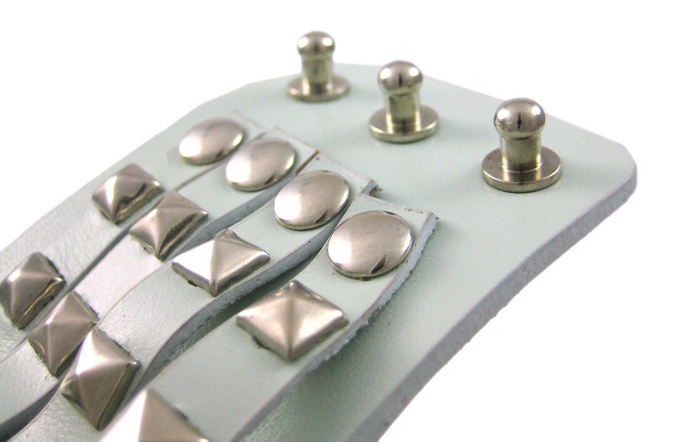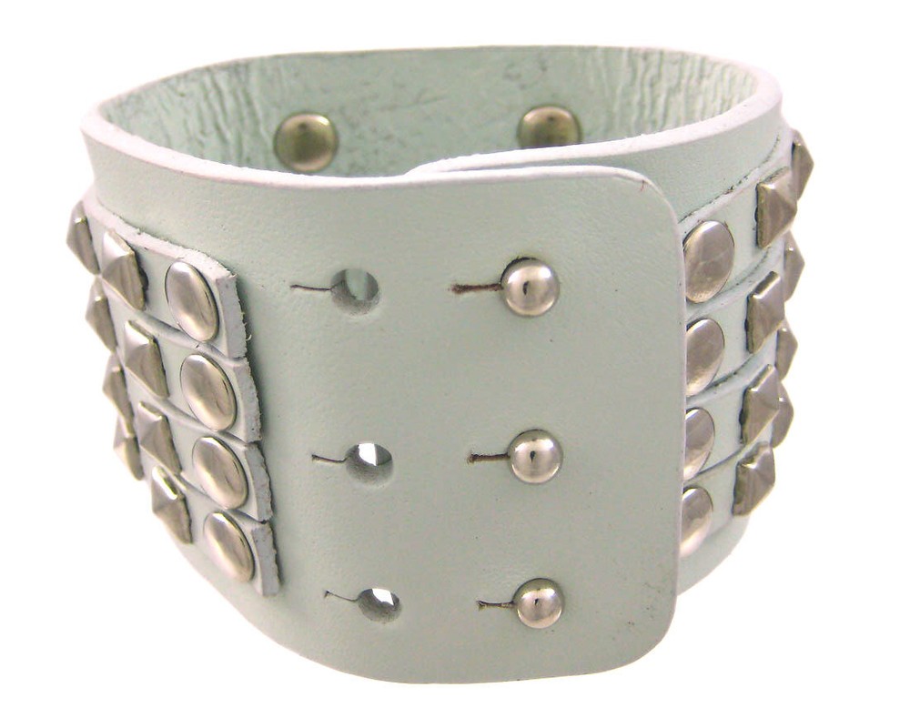 This wristband is a total standout! The gray leather looks sleek, and the chrome pyramid studs add serious edge. It’s well-made, fits comfortably, and the triple tab closure keeps it secure. Perfect for anyone who loves bold, rocker-inspired accessories. Definitely a great gift—stylish and unique!