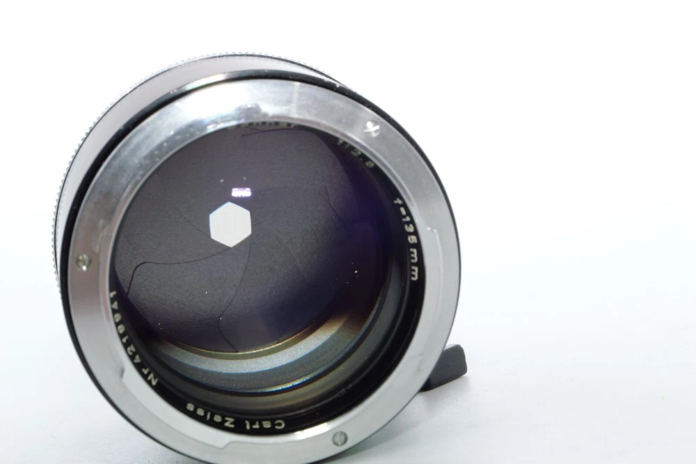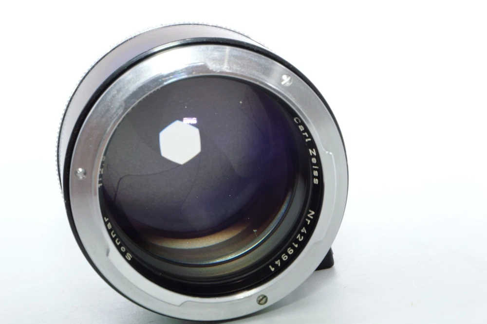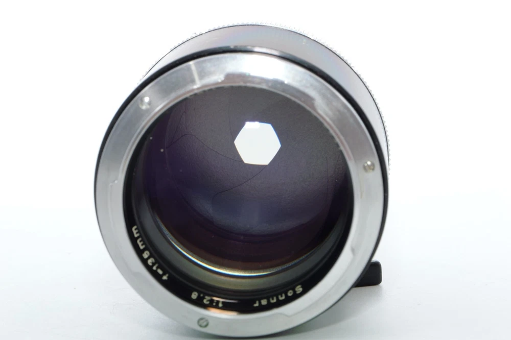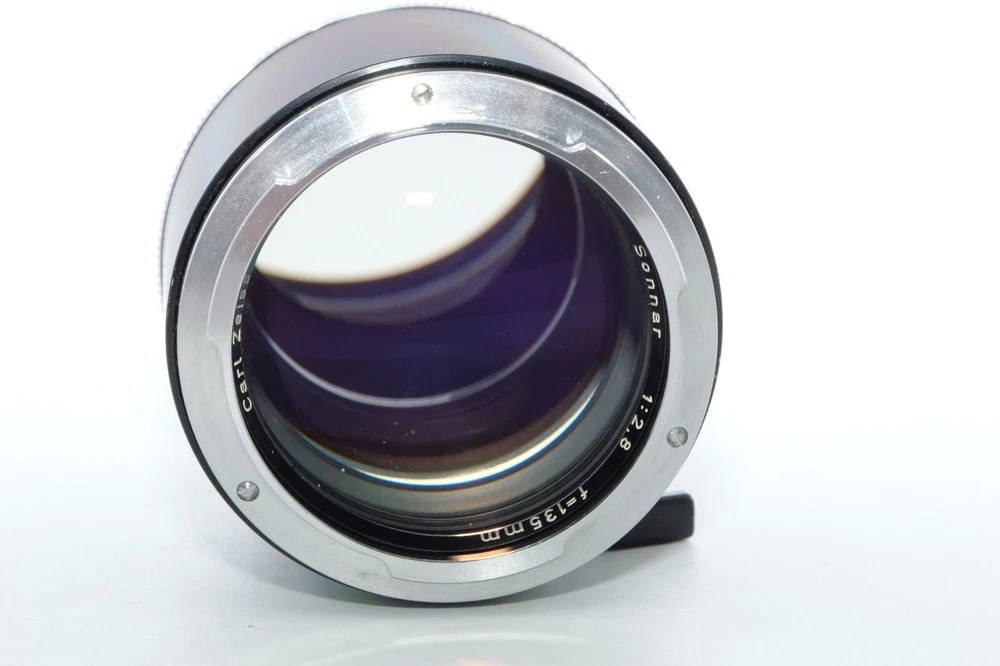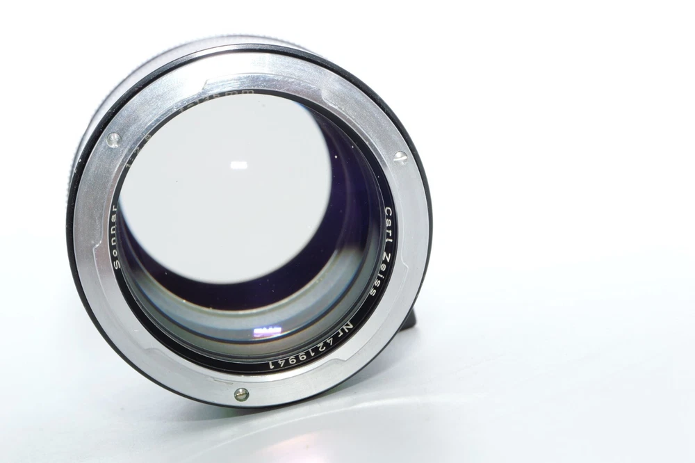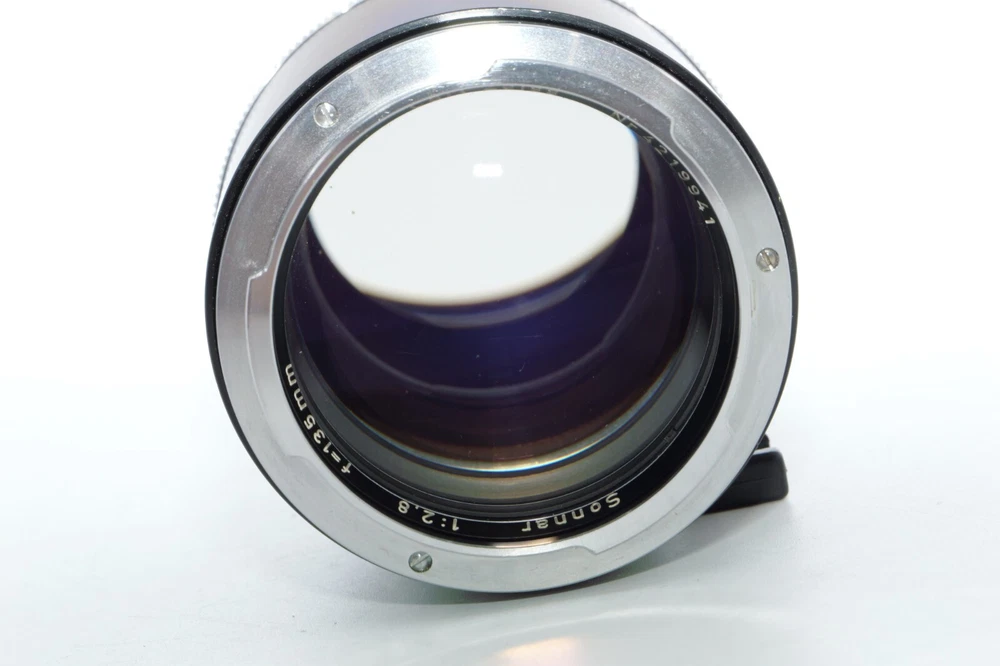 Carl Zeiss Olympia Sonnar 135mm f / 2.8 thelephoto le . Serial # 4219941. Made in Germany. This Sonnar telephoto lens will fit camera's like Contax Contarex, Contax Bullseye, Contax Special and Contax Professional. This lens can also be used on most mirrorless digital cameras with the proper adapter. Lens has close focusing down to 4 ft, or 1.2m. Aperture f/ 2.8 - f/ 22 . Filter size is B56. This Sonnar has a black body. Lens is Ex or 8 of 10 cosmetic condition. No dings or dents. Couple of small marks around on the lens barrel from prior use. Good shooter lens in overall good condition. Nice clean glass. Clean lens coating with no detectable marks or scratches. Clean and smooth six(6) aperture blades. Smooth focus. Also included is a Contarex lens booklet, Zeiss Proxar close-up lens, front lens cap, and B56 skylight filter, and green filters. Nice sharp Contarex 135mm f/2.8 telephoto lens to go with your vintage Zeiss Contarex camera. Sells with NO RESERVE at a price of $375. I have more interesting Contax Rangefinder and Reflex cameras, Contax lenses and Contax accessories on my other Auctions, E-bay Store and web page.