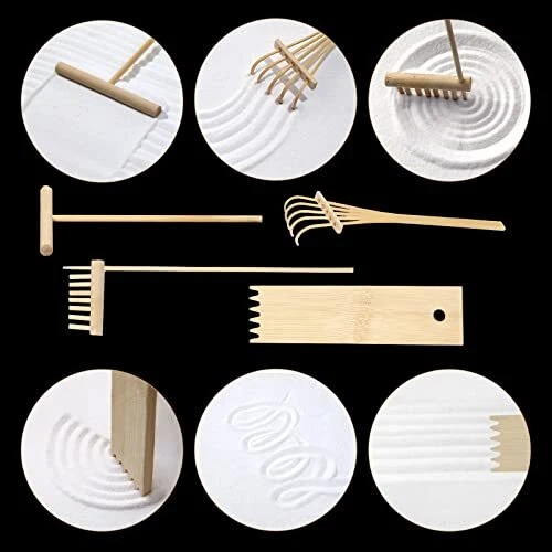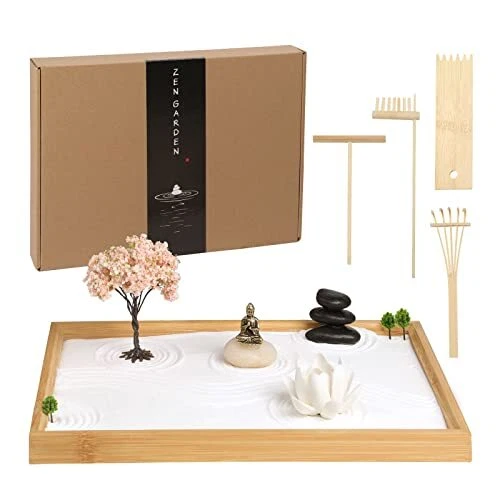 Return Policy Fast Delivery Trusted seller Zen Garden Kit for Office Desk, Japanese Meditation Decor Sand Art with Tray/Buddha Statue/Handmade Ceramic Lotus Incense Holder/Zen Accessories, Spiritual Gift for Women Men Yoga Mind Relaxation Product Description Less Is More - With the purpose of “move the viewer from a cluttered mind to a state of focused mind”, our zen garden kit is designed with the vital elements of large-scale zen gardens. The miniature dry garden comes with a 13x8.6” bamboo tray, buddha statue, lotus incense holder, sand, rocks, cherry tree, mini plants and 4 miniature zen tools. Create your own meditative place to rest the mind! Smooth Mind, Bring Calm - Combing and arranging a zen garden is a very calming and relaxing activity! Japanese zen gardens create a sense of peace, harmony and tranquility. Often taking a moment to meditate is impractical in an office setting, but this mini desktop zen garden makes it happen. Definitely help bring harmony between our busy daily lives and nature! Valuable Zen Accessories - Compared with other resin statue, our Buddha statue is made of pure copper, lightweight, corrosion-resistant and long-lasting. Handmade ceramic lotus works with as an incense holder, fragrance diffuser (just spray perfume on it) and tabletop decor. 4 different zen tools allows you to design freely. Add Peaceful Aura To Your Decor - Japanese gardens are havens of beauty, tranquility and cultural landscapes, and places for natural healing. It is great for office workspace, offering you a relaxing break from computer work. Also a meditative decor for living room, bedroom, study room or guest room. Ideal Spiritual Gift - Looking for a special, mindful gift? Try our Japanese zen garden, allowing to connect with nature and cultural art. A fascinating gift to help combat stress and anxiety during hectic moments. Nice companion for work, yoga, fitness and relaxation. Shipping Returns Payment Shipping Shipping is FREE to all addresses other than APO/PO boxes in the lower 48 states. All our stock ships from US-based warehouses. Shipped via USPS or UPS (depending on location and package weight) Unless stated otherwise, all orders will ship within 24-72 hours of your payment being processed. Check our feedback to see the great reviews of FAST shipping we offer. Returns Seller does not accept returns Payment We currently accept payment via eBay managed payments only. Once payment is cleared, we will dispatch your shipment within 1-3 business days. Please refer to the "Shipping" tab for more information regarding shipping speed to your destination.