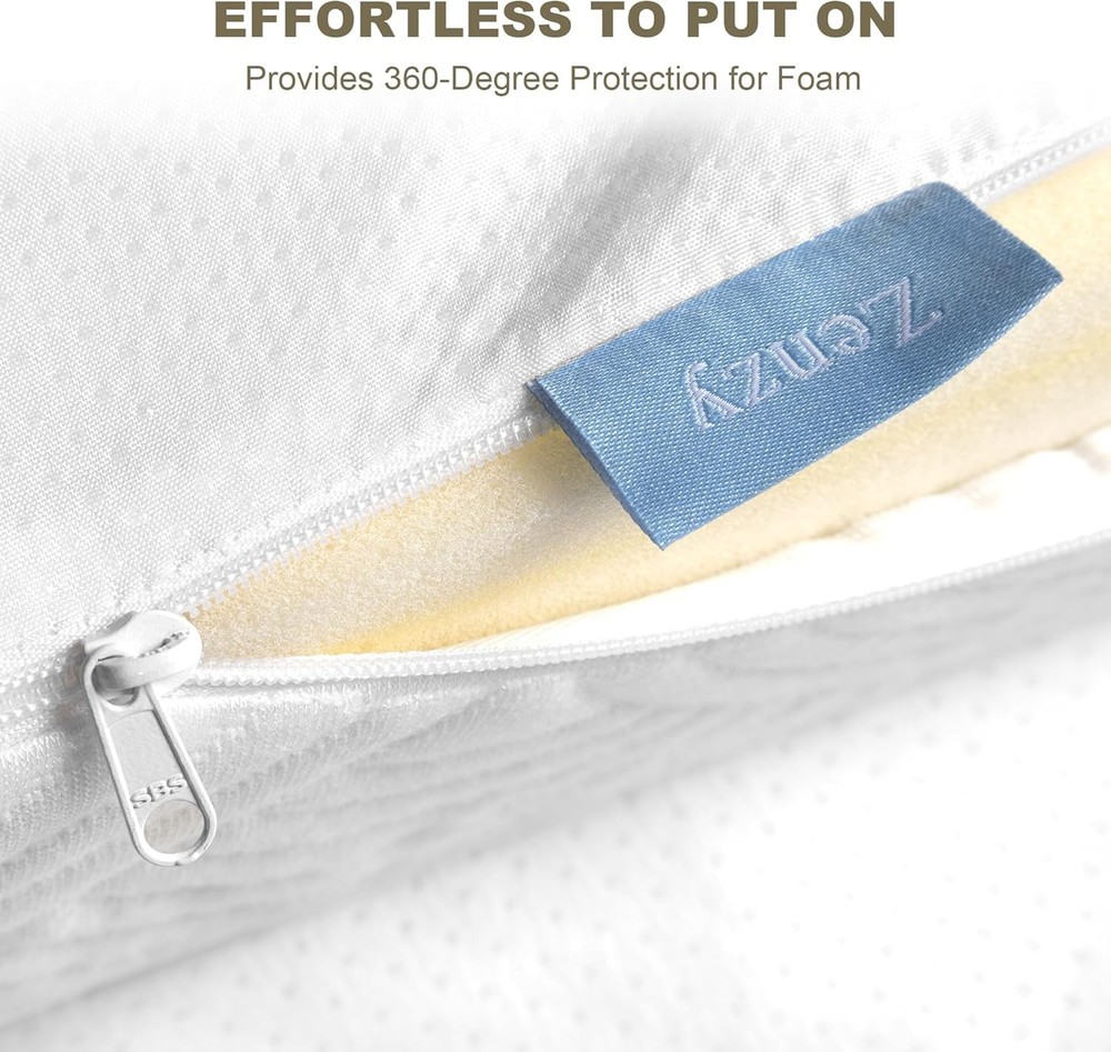 Zenzy 4" Full Bamboo Mattress Topper Cover, Oeko-TEX Certified, Full, 4 Inch Product Details Brand: Zenzy Color: 4 Inch Size: Full Fabric Type: 60% Polyester, 40% Rayon from Bamboo Special Feature: Cooling, Adjustable, Eco-Friendly, Washable Closure Type: Zipper Product Care Instructions: Machine Wash Water Resistance Level: Not Water Resistant Age Range (Description): Adult Material: 60% Polyester, 40% Rayon from Bamboo Manufacturer: Zenzy Product Dimensions: 74 x 53 x 4 inches Item Weight: 2.64 pounds Country of Origin: China ONLY COVER: Only the cover for mattress topper, foam not included, the dimensions is 74in x 53in x 4in SPECIALIZED MANUFACTURING: Certified by OEKO-TEX certification No. 17.HCN.13316, this material is not only luxuriously soft but also breathable, promoting a deeper and quicker onset of sleep NON-SLIP: The rubberized bottom and adjustable elastic strap allow for mattress depths of up to 18 inches, ensuring the topper remains securely in place FULL PROTECTION: Zenzy zippered encasement cover provides 360 degree protection for your memory foam or latex topper EASY TO CLEAN: This mattress cover is machine washable and suitable for low speed tumble drying, offering convenient maintenance