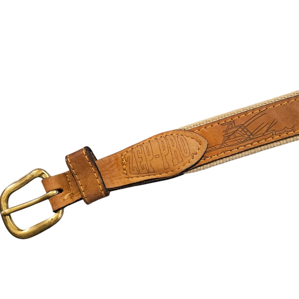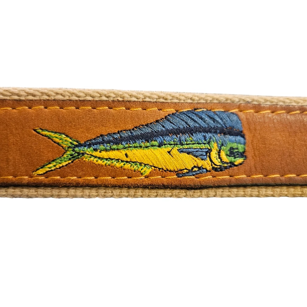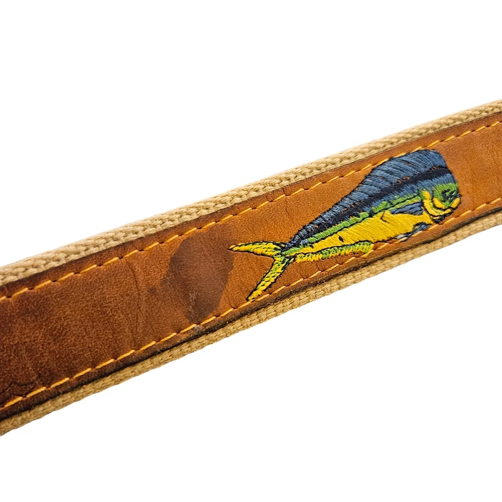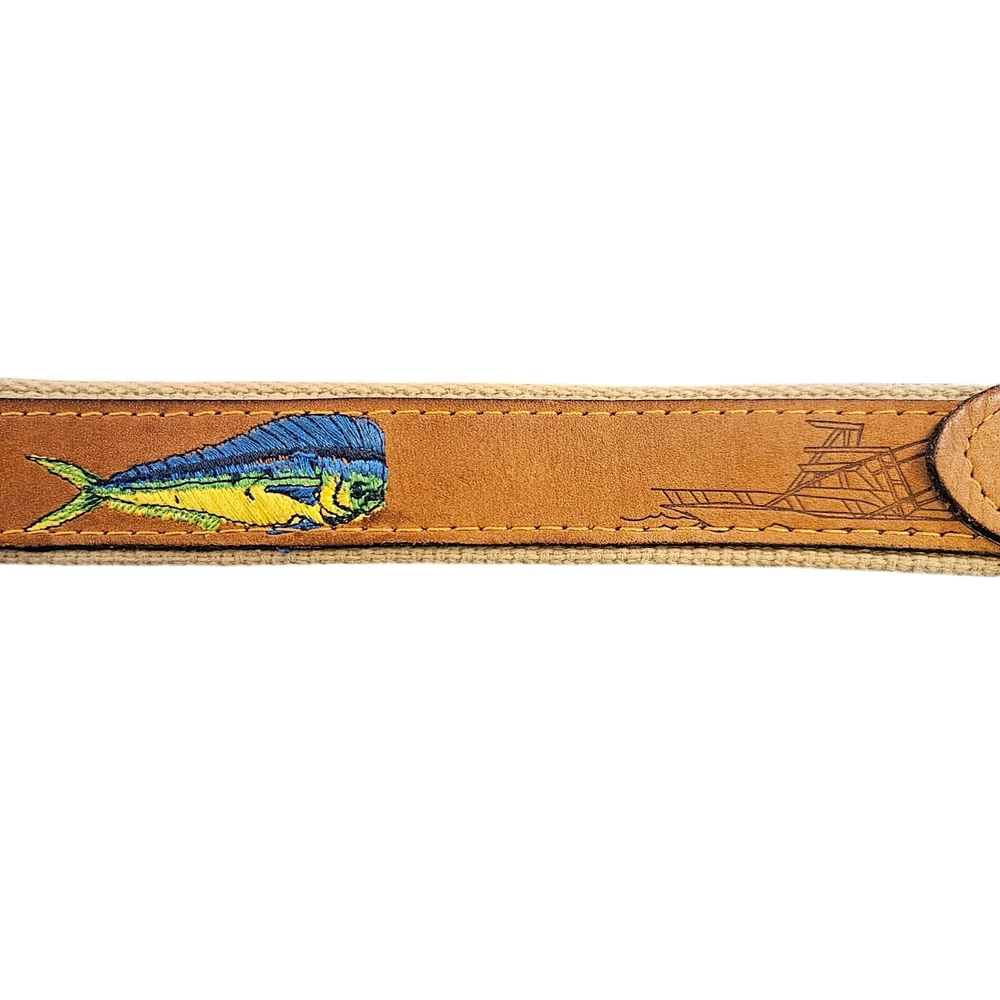 Zep Pro Mens Leather Canvas Mahi Yacht Embroidered Belt Size 42 USA Fishing Boat