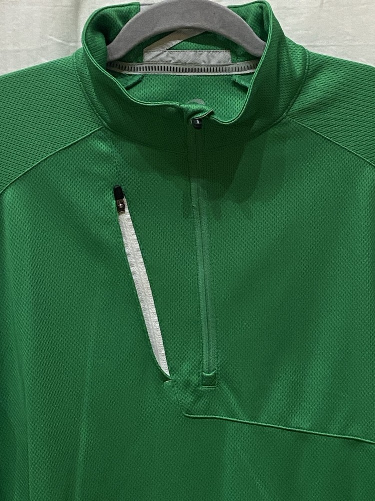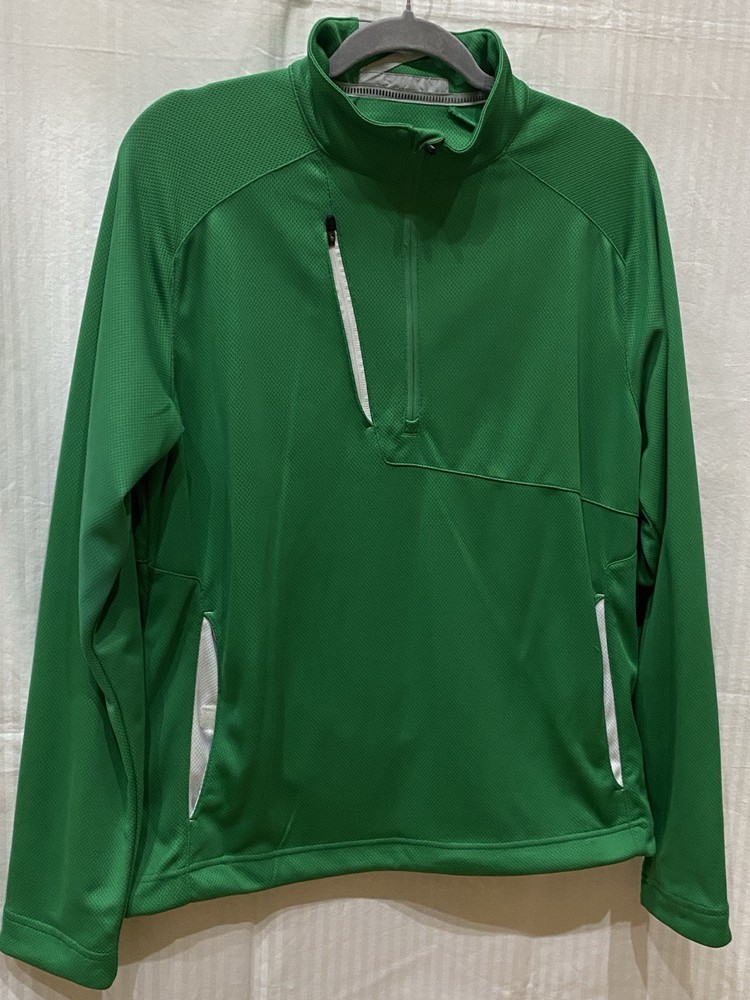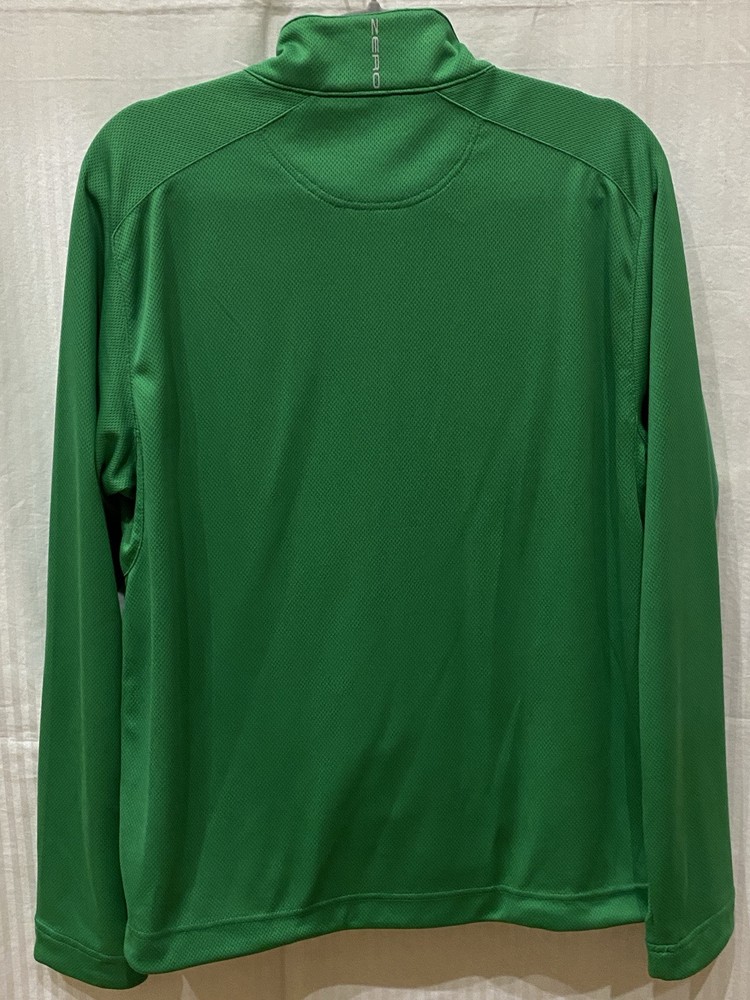 The Zero Restriction Z500 1/4 Zip Golf Pullover is a men's pullover designed for golfing in style and comfort. Featuring a mock neck with a stand-up collar, this green pullover is made from a blended fabric of polyester and spandex, offering stretch for ease of movement during play. The pullover includes a 1/4 zip closure, pockets, and subtle logo accents, making it a versatile piece suitable for travel, activewear, or casual wear during the fall, winter, or spring seasons. Perfect for golf enthusiasts seeking a classic and performance-driven garment.