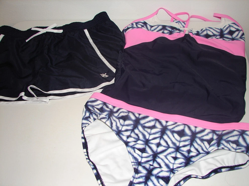 HomeZero Xposur Navy & Pink 3 Piece Tankini + Swim Shorts Swimsuit Set Girl's Sz 16
