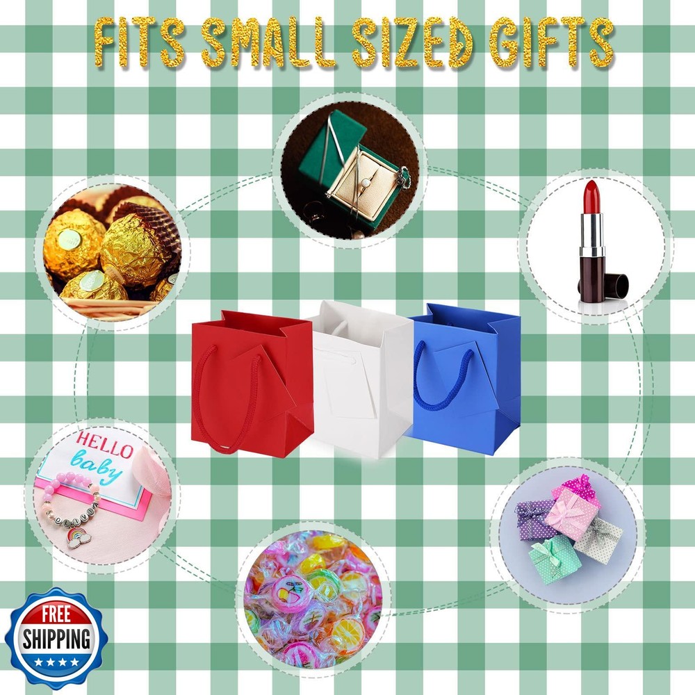 Zhehao 50 Pack Mini Gift Bags, 4 x 2.75 x 4.5 Inches Paper Bags with Gift Tags, Extra Small Paper Gift Bags with Handles for Birthday Gifts, Party Favors, Weddings, Baby Showers (Bright Colors) Features Enough Quantity for Use: you will receive 50 pieces of mini paper bags with gift tags, sufficient quantity that can satisfy your daily use and replacements; Simple and generous design will decorate your gifts into an exquisite style; PS: If the quantity you receive is not enough, or if it is damaged, please contact us to deal with it Hold Most Small Party Supplies: each paper gift bag measures about 10 x 7 x 11.5 cm/ 4 x 2.75 x 4.5 Inches, such a tiny and portable size that can hold most small items like gifts, groceries, clothing, snacks, lunch food, toys and arty favors Sturdy Material: these small gift bags are made of quality cardboard, lightweight but sturdy, not easy to break or tear; In addition, the bottom of these bags are reinforced and easy to stand, so they also have strong bearing capacity; The handle is designed with cotton rope, it can be fixed without knotting at the end of the rope, making it more convenient for you to carry Considerate Gift Tag Design: each mini gift bag comes with a small blank gift tag at the hand rope; You can write different messages or blessings on the small tag according to your needs, to make your gift bag more personalized and stand out from the crowd Widely Use: whether it's baby showers, birthday parties, holiday parties, weddings or dinner parties, these mini gift bags are your ideal choice for small wedding packages, gift bags, party bags, retail bags and more Shipping Free & Fast Shipping: We offer free shipping to most of the USA with a normal delivery time of 3-7 days. However, due to the current situation, additional delivery time (up to 3 weeks) may be required for some items. Alternative Carriers: We may use alternative carriers (e.g., USPS, FedEx, UPS) to ensure your package arrives safely and on time. Due to the use of multiple carriers, we are unable to provide a tracking number automatically. Handling Time: Orders are processed and shipped within 1-2 business days of receiving cleared payment. Shipping Restrictions: Shipping to Alaska, Hawaii, Puerto Rico, Guam, and other US territories may incur shipping charges or delivery restrictions. Please contact us before ordering, or your order can be refunded/cancelled. State Restrictions: Certain items may not be shipped to California due to state regulations. Contact for Tracking Updates: If you require tracking updates or have any concerns about the delivery of your order, please feel free to contact us, and we will be happy to assist you. Return Policy 30-Day Hassle-Free Returns: If you are not completely satisfied with your purchase, you can return the item for free within 30 days of receiving it for a full refund or exchange. Easy Return Process: Contact us, and we will provide you with a prepaid return shipping label and detailed instructions. No Restocking Fee: There are no restocking fees for returns. However, the buyer is responsible for return shipping costs if the return is not due to a seller"s error. Refund Processing: Refunds will be processed within 1 business day of receiving the returned item in its original condition. Feedback Your feedback is extremely important to us. We strive to provide the best products and customer service possible. If you are satisfied with your purchase, please take a moment to leave us a positive review. If you have any concerns or issues with your order, please contact us before leaving negative feedback. We are committed to resolving any problems and ensuring your satisfaction. Contact Us If you have any questions or concerns, please feel free to reach out to our customer support team. You can contact us through the eBay messaging system. We are available Monday to Friday, 9:00 am to 5:00 pm EST, and we will do our best to respond to your inquiry within 24 hours. Thank you for supporting our small family business!