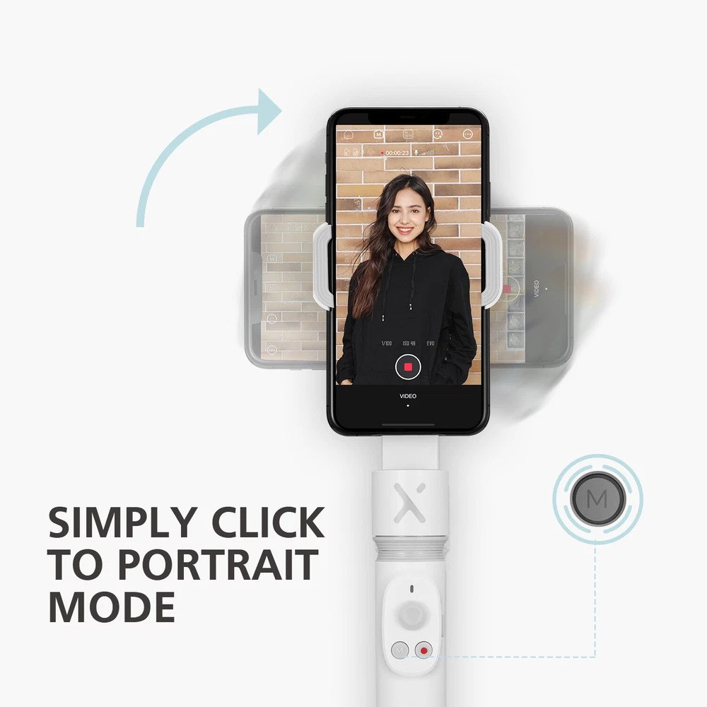 ZHIYUN Smooth-X: Explore Your Xtra Life IMPORTANT NOTICE: Please check ZHIYUN Smooth-X User Guide and balance your phone first before using. Please download "ZY Cami" app via iOS App Store and Google Play Store for more functions. Activation on "ZY Cami" app is required before using Smooth-X. Highlight: ZHIYUN Smooth-X is a gimbal stabilizer for smartphones with phone sized flodable design. With the unique selfie stick design, Smooth-X can be extended up to 260mm. ZHIYUN Smooth-X Gimbal can stabilize your videos and make them as smooth as a film. Foldable & Rotatable: Ultimate flexibility in your palm. The size of 65 x 56 x 145 mm can be fitted in your pocket effortlessly. Extendable Selfie Stick: Smooth-X is not only a foldable gimbal stabilizer for smartphones, but also a extendable selfie stick. It can be extended up to 260mm to explore more possibilities Portrait Mode: With a single click on the gimbal button, you can enter in portrait/landscape mode to record YouTube live stream or Tik Tok videos in your own style. Bluetooth Control to Camera: Connect Smooth-X selfie stick gimbal with your smartphones via Bluetooth. You can trigger video recording or photo taking without touching the screen. New "ZY Cami" App for the Creativity The brand new "ZY Cami" app is specifically designed for Smooth-X. "ZY Cami" is easy and fun to use, and it includes poweful functions like face/object tracking, video SMART modes. All your videos can be more creative with simple clicks. Make a movie-like videos without video editing skills needed. Face/Object Tracking: Frame the object/face in "ZY CAMI" app. Smooth-X gimbal stabilizer will start tracking your favourite items. It is just that simple! Gesture Control: With the intelligent technology of Smooth-X gimbal and "ZY CAMI" app. Showing a "V" gesture or waving to the camera can be used to take photos and record videos. Explore more fun! Filmmaking Features: Slow motion, timelapse, panorama and more creative film making features are awaiting you to unlock. Standard Standard Combo Combo See Details See Details See Details See Details Customer Reviews 3.7 out of 5 stars 505 3.7 out of 5 stars 505 3.9 out of 5 stars 942 3.9 out of 5 stars 942 Color Gray White Gray White Tripod ✓ ✓ Travel Case ✓ ✓ Face Tracking ✓ ✓ ✓ ✓ Foldable & Extendable ✓ ✓ ✓ ✓ App ZY Cami ZY Cami ZY Cami ZY Cami Tech Specs Size (Folded) 65*56*145 mm Size (Unfolded) 57*56*263 mm Exxtendable Grip Up to 260 mm / 10.24 inch Gimbal Type 2-Axis, Pan Axis & Roll Axis Weight 246 grams / 8.68 ounces / 0.54 lbs Color White Mounting 1/4"-20 Female Battery Life Up to 4 hours Valid Payload 200±35 grams Charging Port USB Type-C iPhone Compatibility (✔) iPhone 11 Pro Max / iPhone 11 Pro / iPhone 11 / iPhone XS Max / iPhone XS / iPhone XR / iPhone X, (✔) iPhone 8 Plus / iPhone 8 / iPhone 7 Plus / iPhone 7 / iPhone 6s Plus / iPhone 6s Android Compatibility (✔) Samsung Galaxy S10+ / Galaxy S9+ / Galaxy S9 / Galaxy S8+ / Galaxy Note 9 / Galaxy Note 8,(✔) Mi 9 / Mi 8 / Mix 3 / Mix 2,(✔) One Plus 7 Pro / OnePlus 6T, (✔) Google Pixel 3XL Notes Please check the *Application Guide* for the full phone compatibility list and *User Guide* for more information. What's in the Box Smooth-X Gimbal Stabilizer x1, Tripod x1, Travel Case x1, USB Type-C Cable x1, Quick User Guide x1 What's in the box Smooth X gimbal Smooth X Case Smooth X gimbal Tripod