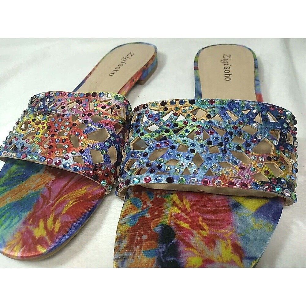 Zigi Soho 9 Taniya Slide Sandals Rainbow Mermaid Bling Rhinestone Flats