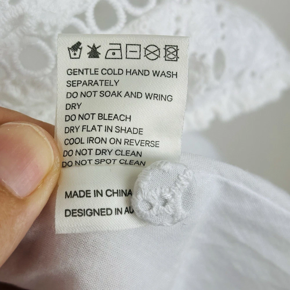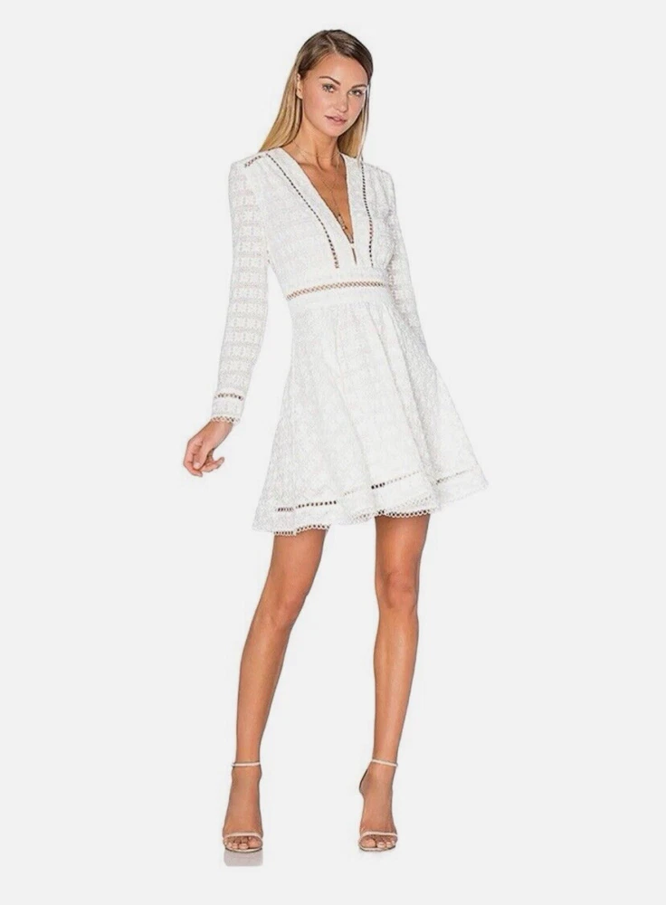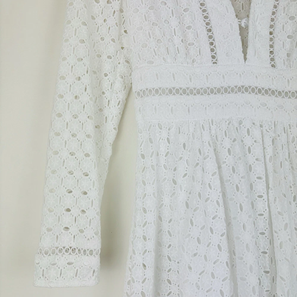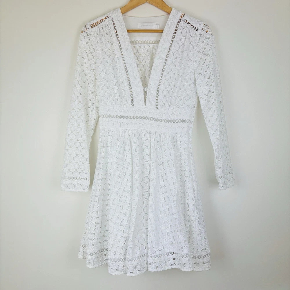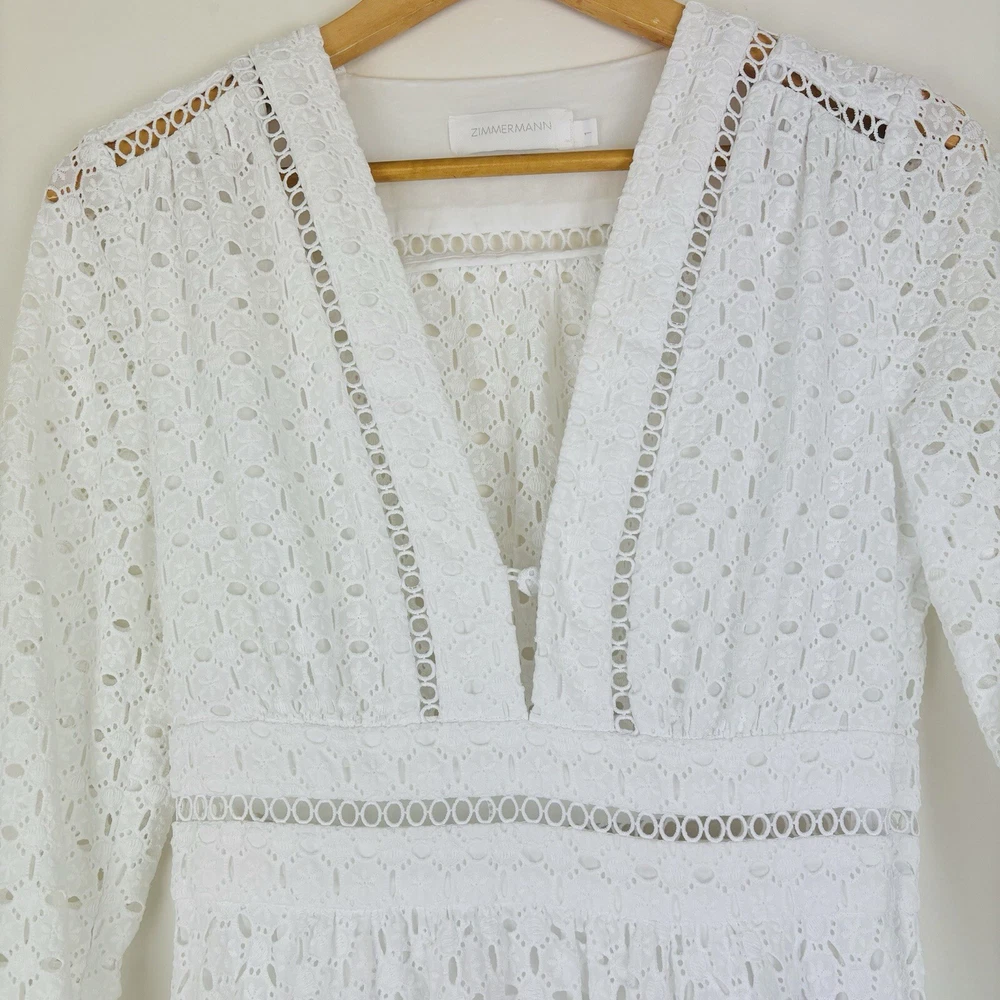 Zimmermann Dress Size 1 AU 10 US 6 Zephyr Broderie Eyelet Long Sleeve White