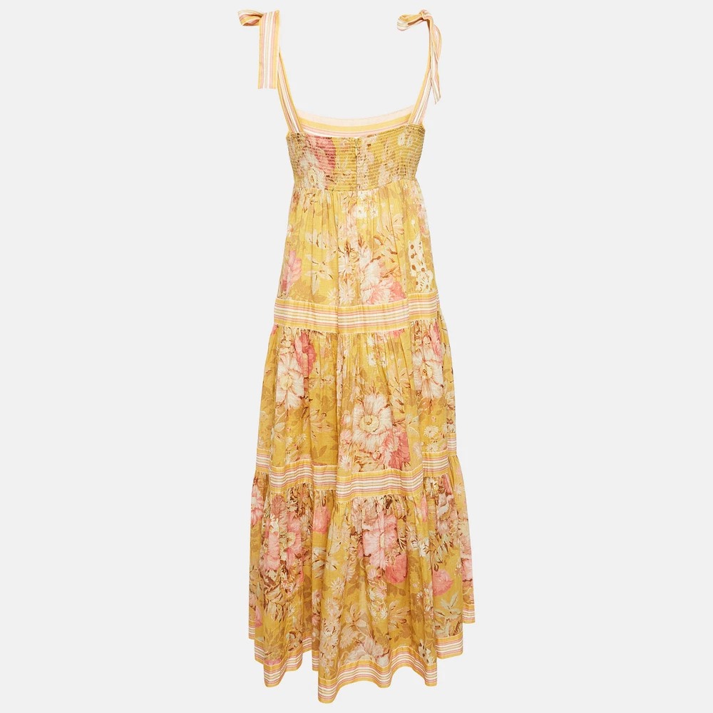 This stylish midi dress exudes elegance and sophistication. Its flattering length falls between the knee and ankle, offering a versatile option for various occasions. With its chic design, it combines modern trends with timeless charm, making it a must have wardrobe staple for fashion forward individuals.Certified by The Luxury Closet - This item has gone through a detailed authentication process overseen by our experts. We offer a lifetime guarantee of authenticity on all our items. Import duties, taxes and charges are not included in the item price. These charges are the buyers responsibility. Please check with your country’s customs office to determine what these additional cost will be prior to buying. Our eBay Store About Us Contact Us Add to Favorite Sellers Zimmermann Yellow Floral Print Cotton Shoulder Tie-Up Midi Dress L $207.9 This stylish midi dress exudes elegance and sophistication. Its flattering length falls between the knee and ankle, offering a versatile option for various occasions. With its chic design, it combines modern trends with timeless charm, making it a must have wardrobe staple for fashion forward individuals. Product Details Brand Color Yellow Dimensions Material Cotton Size L Outsole Width Outsole Length Heel Height Includes The Luxury Closet Packaging Certified by The Luxury Closet This item has gone through a detailed authentication process overseen by our experts. We offer a lifetime guarantee of authenticity on all our items. How We Check The in-house team of experts at The Luxury Closet is highly trained to verify the authenticity and the condition of the luxury products. They ensure that only 100% authentic items are put on sale.The evaluation process is unique with its own mix of assessment criteria and differs according to the category. Each item is evaluated based on the following combination of hallmarks, hardware, stitching, symmetry, material, craftsmanship, stamping, codes, hologram stickers, and packaging. Our authenticators also check if the items have been modified or amended (e.g., aftermarket diamonds, replaced batteries, repaired bags, etc.) International Buyers Import duties, taxes and charges are not included in the item price. These charges are the buyers responsibility. Please check with your country’s customs office to determine what these additional cost will be prior to buying.