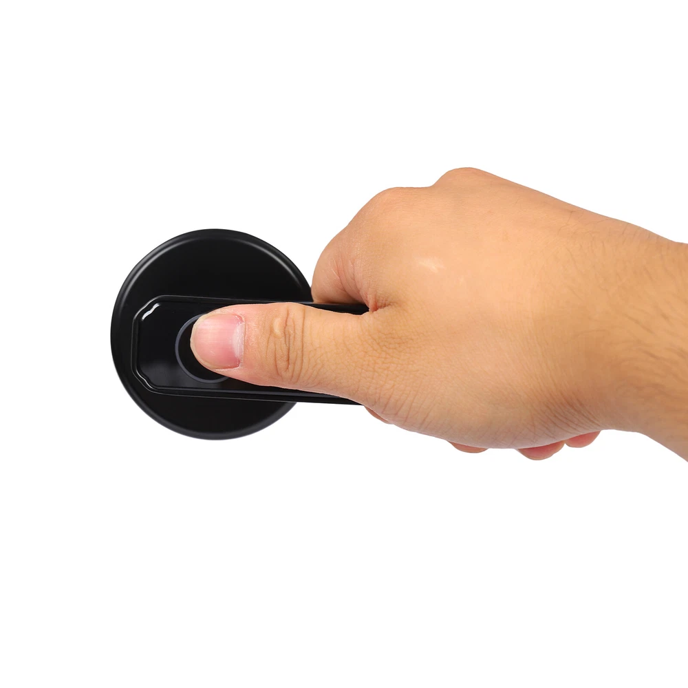 Zinc Alloy Finger Print Lock, Bedroom Door Lock Keypad Door Lock W/ Handle Description The smart lock can bring a lot of convenience to our life, protect our privacy, and also be the witness of our life. The door lock is made of solid and durable zinc alloy and can be used for a long time. The timeless black look can match many different colors and styles of doors. A variety of powerful functions and high work efficiency can enable you to enter a warm room in a short time, which is a good helper for your life. Key Features High-end Material: The door lock is made of zinc alloy, which is durable, and resistant to rust and corrosion, so it can be used for a long time. Exquisite Workmanship: The door lock is painted to make the surface smoother and the color brighter. It can attract more people’s attention to a certain extent. Multiple Unlocking Methods: There are multiple unlocking methods for this door lock: fingerprint, password, key, and mobile phone. You can choose freely according to your needs. Considerate Design: The product is suitable for left and right handed doors so you can install it directly. In addition, when relatives and friends visit and you are not at home, you can also set a temporary password to prevent them from waiting for a long time. Large Capacity: The door lock can store up to 50 sets of fingerprints and 100 sets of passwords. Such a large capacity allows the door lock to be widely used in a variety of different scenarios. High Efficiency: The door lock adopts semiconductor fingerprint unlocking and AI artificial intelligence algorithm, which can automatically perceive and quickly identify fingerprints, allowing you to open the door within 0.5 seconds, so you don't need to wait for a long time. Good Security Performance: The door lock is designed with an anti-peep touch screen and virtual password, so you can enter a random password before and after the correct password. In addition, when the password is entered incorrectly, the product will have an alarm function, which can better protect your security and privacy. Powerful Functions: The door lock is equipped with a mute mode, and you can adjust the volume to ensure that you will not disturb others when you go home at night. At the same time, if you need to open the door frequently, you can set the always-open model, so you don’t have to press your fingerprint every time. Intelligent Management: You can manage the door lock, such as door lock logs, deleting and adding users, setting volume, alarm functions, etc. This provides you with more convenience. Strong Endurance: The four 2200mAH batteries can be used about 8000-10000 times, and has a low battery warning function to remind you. When powered off, you can also use the charging bank for emergency charging or the mechanical key, so that you can use it without worry. Simple Installation: The package of the door lock includes all the accessories required for installation, and we also provide a detailed manual, so you can install it only according to the steps in the manual. Easy to Clean: The door lock has a smooth surface and a small size, so you can clean it without spending much effort. After a period of use, you only need to use a towel for cleaning. Ideal Gift: The door lock has powerful functions, a beautiful appearance, and high efficiency. It can be used as a gift for a housewarming. You can also give it to friends and family so that they can enjoy more convenience. Quality Service: We stand behind all our guests and look forward to assisting you with your purchase. It is our pleasure to answer your confusion and questions. So please feel free to contact us if you have any problems. Details Round Corners: The corner of the door lock is round. Compared with the traditional square corners, it can better protect your safety and prevent your skin from being scratched. HD Display: When you enter the room, touch the hidden password keyboard, and the digital display will light up. This clear digital display can help you enter the password correctly and quickly. Application This fingerprint lock is designed to fit US standard doors. It is suitable for the door with a thickness of 1-3/8 inches (35mm) to 2-3/16 inches (55mm). This product can be widely used in wooden doors, homes, closets, interior doors, hotels, bedrooms, studies, offices, apartment buildings, etc. How to Add a Fingerprint A: Add users for the first time: 1. Press the setting key and the blue light flashes. 2. Press your finger 5 times until the green light is always on. 3. Successful entry and automatic exit. B: Add users for the second time. 1. Press the setting key. 2. The blue light flashes. 3. Verify the administrator once. (The first three fingerprint users of the door lock are administrators, and the fourth and subsequent fingerprints are ordinary users.) 4. The verification is successful and the blue light is always on. 5. Enter a new fingerprint, press your finger five times, and the green light is always on, indicating success. How to Delete a Fingerprint 1. Press and hold the setting key for 9 seconds. 2. The blue light flashes, and the red light flashes after 9 seconds. 3. Release your hand, and the green light indicates that the factory reset is successful. Specification Color: Black Material: Zinc Alloy Surface Treatment: Painting Style: Modern Shape: Rectangular Control Method: Touch Lock Type: Keypad Lock Capacity: 50 Sets of Fingerprints and 100 Sets of Passwords Power Supply:4 * AAA batteries (Not included ) Capacity of Battery: 2200mAH Service Life of Battery: 8000-10000 Times Charge Port: USB Suitable Door Thickness: 1-3/8 inches (35mm) to 2-3/16 inches (55mm) Net Weight: 0.8kg/1.7lbs Gross Weight: 1kg/2.2lbs Product Size: 15.00cm*6.50cm*6.50cm/5.9*2.5*2.5inch Package Size: 21.8*17.8*7.3cm/8.58*7.01*2.87inch Package Included 2* Door Locks 1* English Manual 2* Keys All Accessories for Installation Notes Please carefully confirm the size of the door before purchase. Please