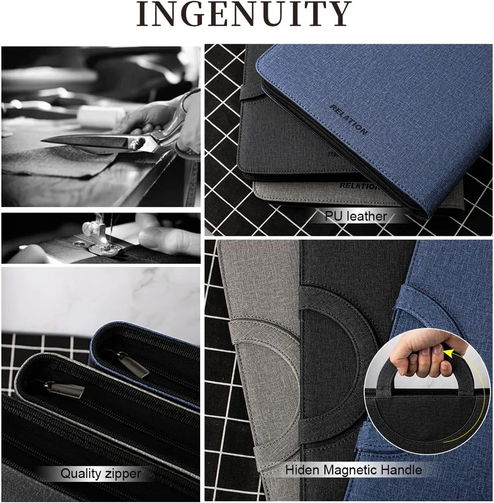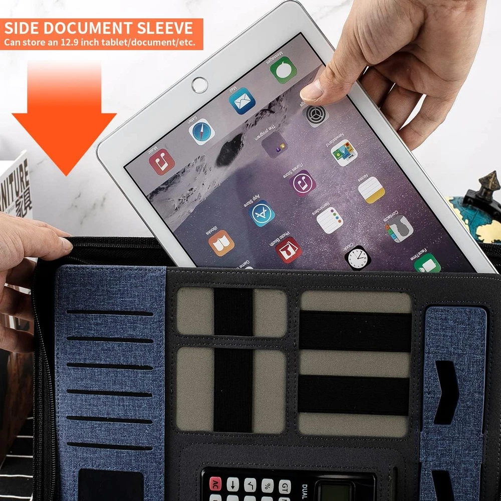 Zippered Padfolio Folder, A4 Multi-Function Portfolio Leather Combination Case,W