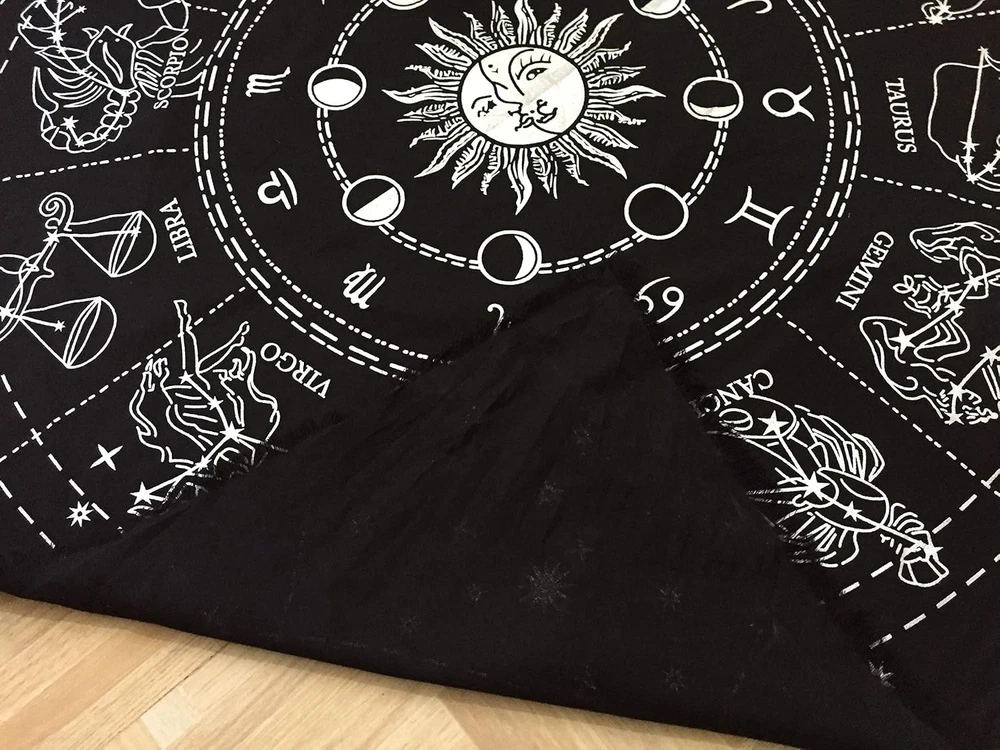 1. This zodiac altar cloth is absolutely stunning—the silver screen-printed designs are crisp and beautifully detailed, making it perfect for tarot spreads, rituals, or simply as a decorative altar piece. The 100% cotton duck fabric feels durable yet soft, and the hand-finished fringes add a lovely traditional touch. It’s clearly made with care, and the fact that it’s handcrafted in India gives it an authentic, artisanal charm. Easy to care for and lightweight, it’s a must-have for anyone into Wicca, astrology, or tarot. Highly recommend!
