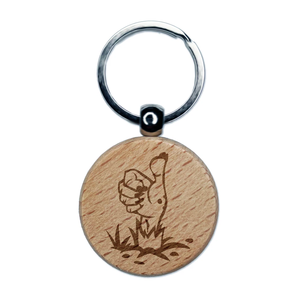 Zombie Hand Thumbs Up Halloween Good Job Engraved Wood Round Keychain Tag Charm