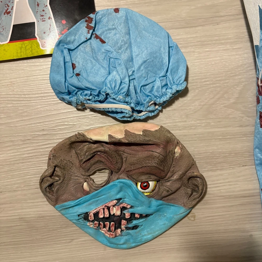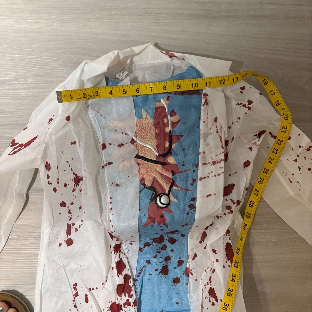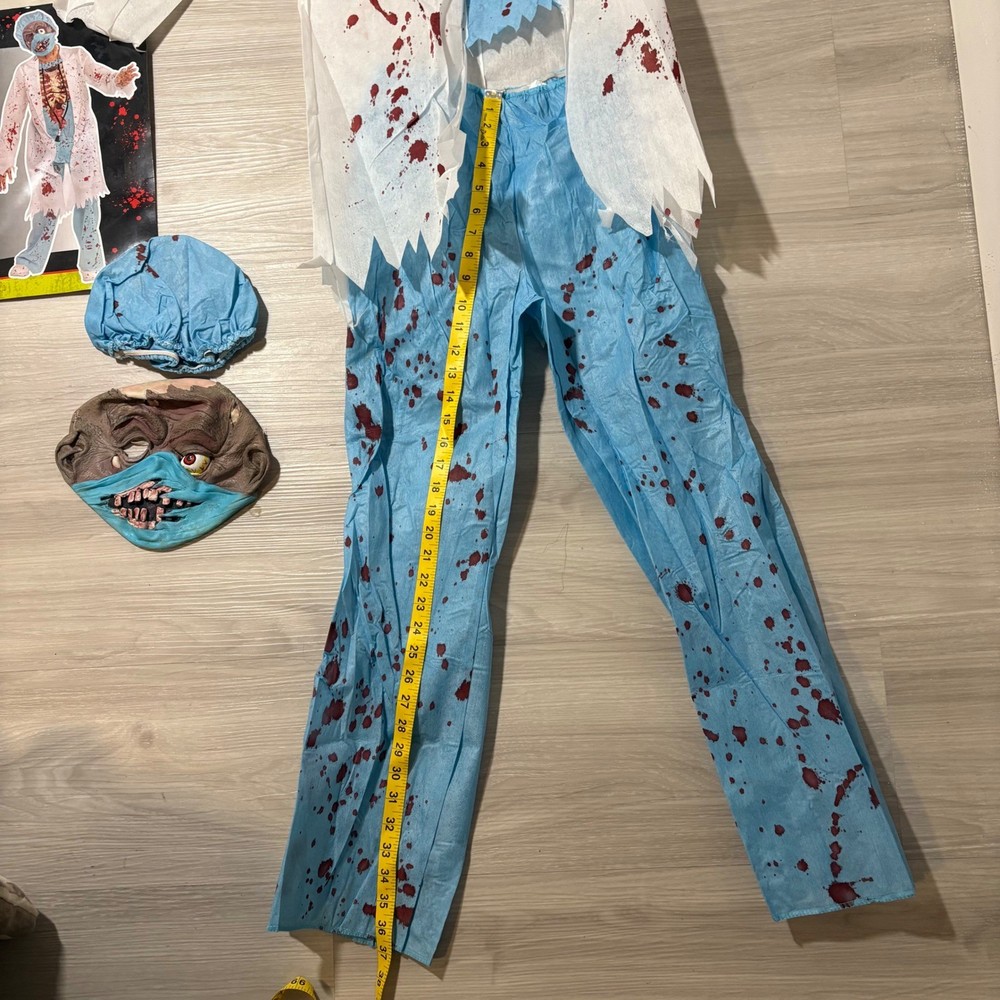 Unleash spine-chilling terror with this Zombie M.D. Doctor Zombie costume, ready to transform your child into the most fearsome figure this Halloween. This frightful 6-piece costume includes a blood-splattered lab coat, matching pants, a gruesome mask, a coordinating hat, and eerie gloves, ensuring a complete and captivating look. Perfect for Halloween night, costume parties, or spooky-themed events, this Zombie M.D. costume is guaranteed to make a haunting impression. Measurements: • Pants inseam: 27 inches • Chest Width: 15 inches • Coat Length: 31 inches Theme: Ghosts & Monsters Style: Complete Outfit Keywords: Zombie Doctor Costume, Halloween Costume Kids, MD Costume, Doctor Costume, Zombie Costume, Child Costume, Large Costume, Grande Costume, Halloween Outfit, Kids Halloween, Costume Party, 6-Piece Costume, Zombie MD Costume