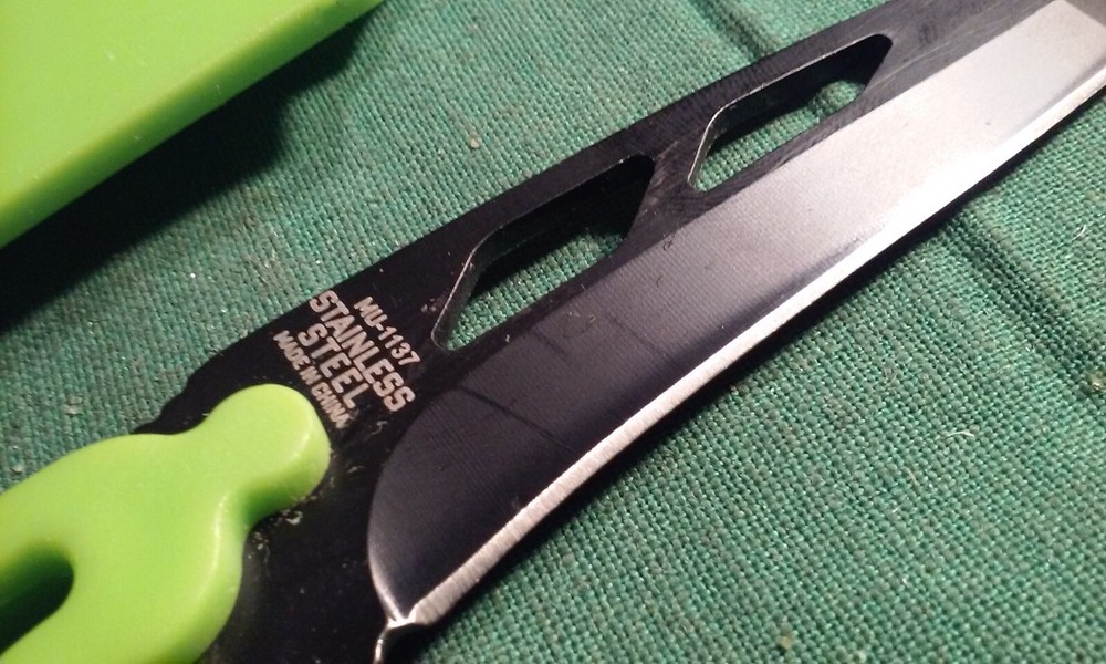 Zombie Tactical Master Skinner Spear Blade Neck Knife w/ Green Sheath Camping, has built in whistle on handle, but not working.