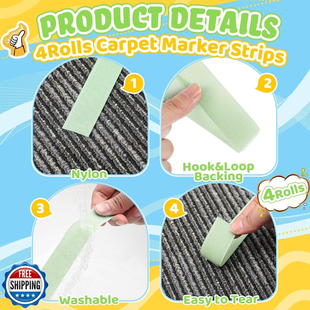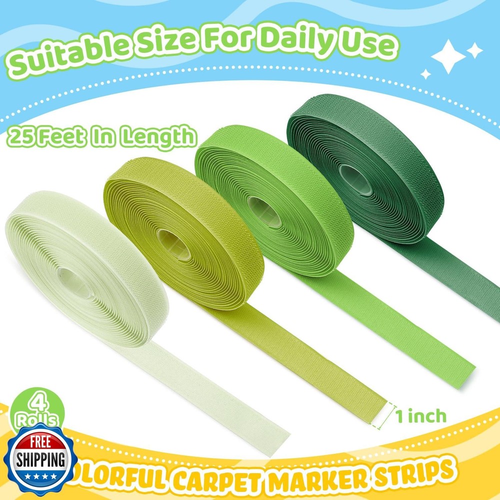 Zonon 4 Roll 100 Feet Carpet Marker Strips for Classroom Nylon Carpet Strip Tape Floor Spots Dots for School Teachers Supplies Classroom Decoration Back to School Office(Dark Green) Features Contains: you will get 4 rolls of carpet marker strips in 4 different green color, look bright and lovely, can help you attract kids' attention, and suitable for social distance marking for customers and employees Size: each roll of the carpet markers strips is 25 feet in length and 1 inch in width, which is enough for your need, easy to cut and trim to size with scissors, kids love finding their social distances from these brightly colored 1 inch strips Reliable material: these carpet markers strips are made of nylon, durable, non-toxic and safe, easy to clean, can support for a long time usage, and they can adhere securely to carpets and the hook and loop design make it won't damage the carpet when removed Function: carpet markers are applied to practice personal space and learning boundaries, to form straight lines, direct classroom traffic, identifying seating areas, and more Easy to carry and store: carpet markers adhere so well to carpets that custodians can vacuum over attached carpet dots without removal; They can also be removed, cleaned and stored in resealable packaging for use year after year Shipping Free & Fast Shipping: We offer free shipping to most of the USA with a normal delivery time of 3-7 days. However, due to the current situation, additional delivery time (up to 3 weeks) may be required for some items. Alternative Carriers: We may use alternative carriers (e.g., USPS, FedEx, UPS) to ensure your package arrives safely and on time. Due to the use of multiple carriers, we are unable to provide a tracking number automatically. Handling Time: Orders are processed and shipped within 1-2 business days of receiving cleared payment. Shipping Restrictions: Shipping to Alaska, Hawaii, Puerto Rico, Guam, and other US territories may incur shipping charges or delivery restrictions. Please contact us before ordering, or your order can be refunded/cancelled. State Restrictions: Certain items may not be shipped to California due to state regulations. Contact for Tracking Updates: If you require tracking updates or have any concerns about the delivery of your order, please feel free to contact us, and we will be happy to assist you. Return Policy 30-Day Hassle-Free Returns: If you are not completely satisfied with your purchase, you can return the item for free within 30 days of receiving it for a full refund or exchange. Easy Return Process: Contact us, and we will provide you with a prepaid return shipping label and detailed instructions. No Restocking Fee: There are no restocking fees for returns. However, the buyer is responsible for return shipping costs if the return is not due to a seller"s error. Refund Processing: Refunds will be processed within 1 business day of receiving the returned item in its original condition. Feedback Your feedback is extremely important to us. We strive to provide the best products and customer service possible. If you are satisfied with your purchase, please take a moment to leave us a positive review. If you have any concerns or issues with your order, please contact us before leaving negative feedback. We are committed to resolving any problems and ensuring your satisfaction. Contact Us If you have any questions or concerns, please feel free to reach out to our customer support team. You can contact us through the eBay messaging system. We are available Monday to Friday, 9:00 am to 5:00 pm EST, and we will do our best to respond to your inquiry within 24 hours. Thank you for supporting our small family business!