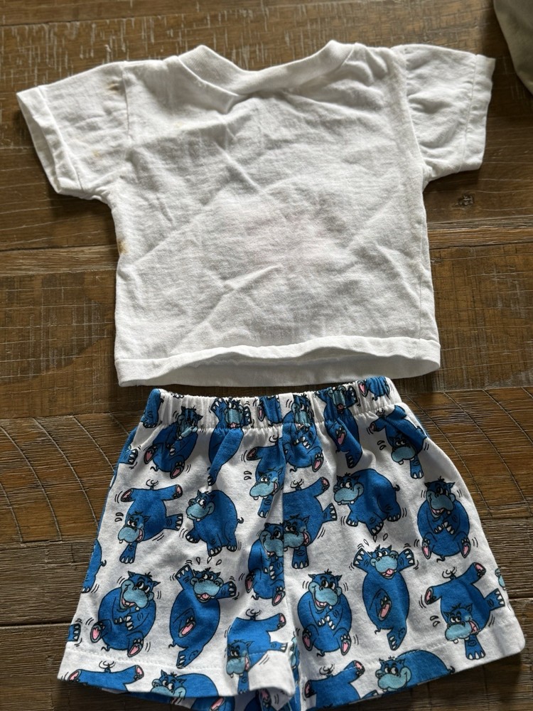 Zoo Gallery 2pc Shorts Set 12M White Tee & Blue Hippo Print Shorts