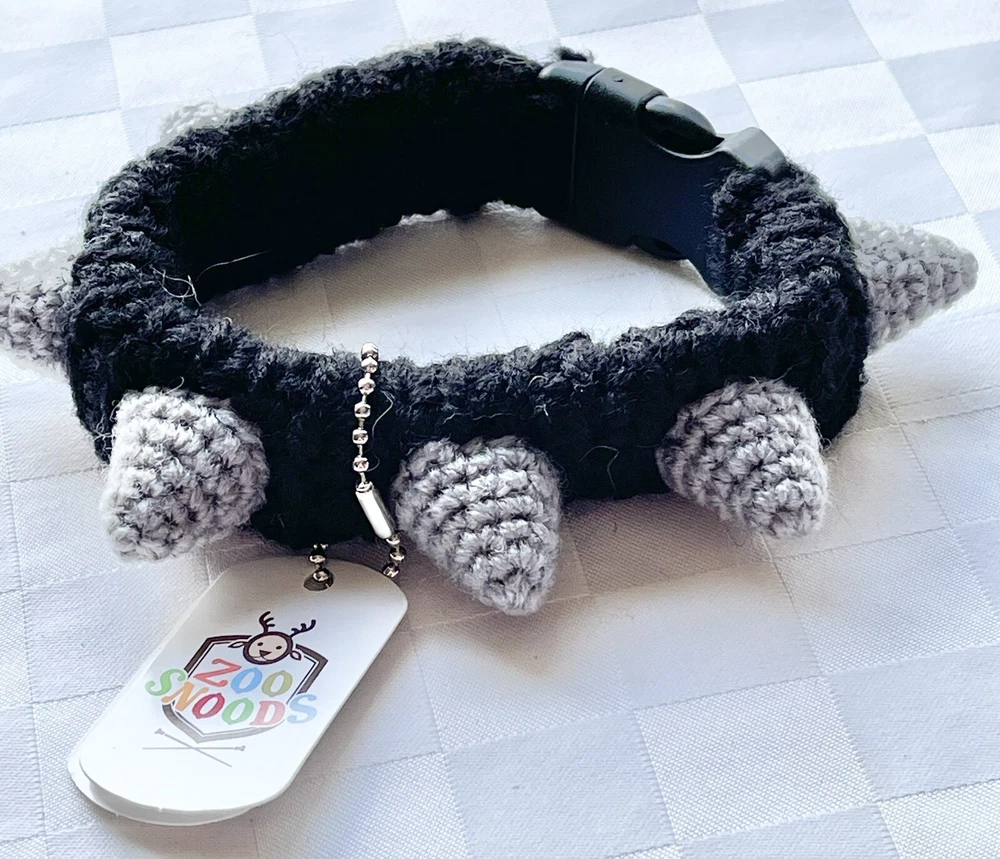 Description: Brand new with tags Zoo Snoods The Original Knit Spike Dog Collar Size small Crochet black spiked knit collar 100% acrylic yarn with plastic buckle Thank you for taking the time to look at this item. If you have any questions please do not hesitate to message me directly through eBay messaging. I assure you that I will respond very promptly. ****BUY WITH CONFIDENCE FROM A LONGTIME EBAY MEMBER , BUYER AND SELLER WITH A 100% POSITIVE RATING**** Customer Satisfaction is my top priority. If you have a problem with your purchase please contact me for resolution before leaving negative feedback or anything less than a 5 star rating. I work hard for my feedback and want your purchase to be what you expected! Shipped via USPS Priority Mail or USPS Ground Shipping (your choice). **All sales final unless misdescribed, damaged or defective according to EBay’s Guarantee Return Policy** All purchases are packaged securely and properly in order to ensure that your purchase arrives in the exact same condition as the pictures/description and is done so in order to ultimately prevent damage while in transit. **Please note that all transactions (purchases) are videotaped while being processed for shipping in order to prevent fraud and false claims** ****International Buyers**** Please Note: Import duties, taxes, and charges are not included in the item price or shipping charges. These charges are the buyer's responsibility. Please check with your country's customs office to determine what these additional costs (duties/taxes) that will be applicable prior to bidding/buying. These charges are normally collected by the delivering freight (shipping) company or when you pick the item up from your local post or customs office, please do not confuse them for/as additional shipping charges. *I will not mark merchandise values below value or mark items as gifts.* The US and International government regulations prohibit such behavior. I appreciate your understanding and not requesting that I engage in such practices. I truly appreciate your business and will go out of my way to ensure that you’re not just satisfied but happy with your purchase as well. I aim to make every transaction effortless and accurate. Sincerely and respectfully, Kathryn