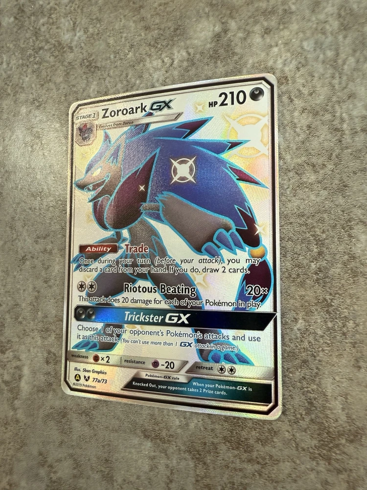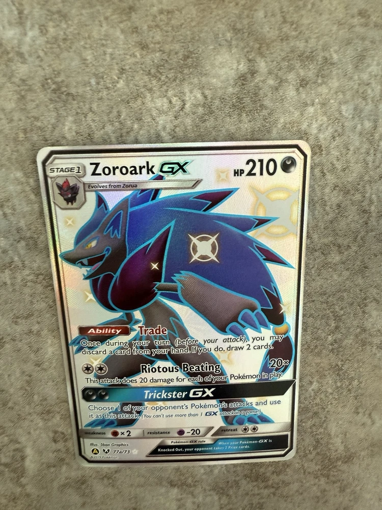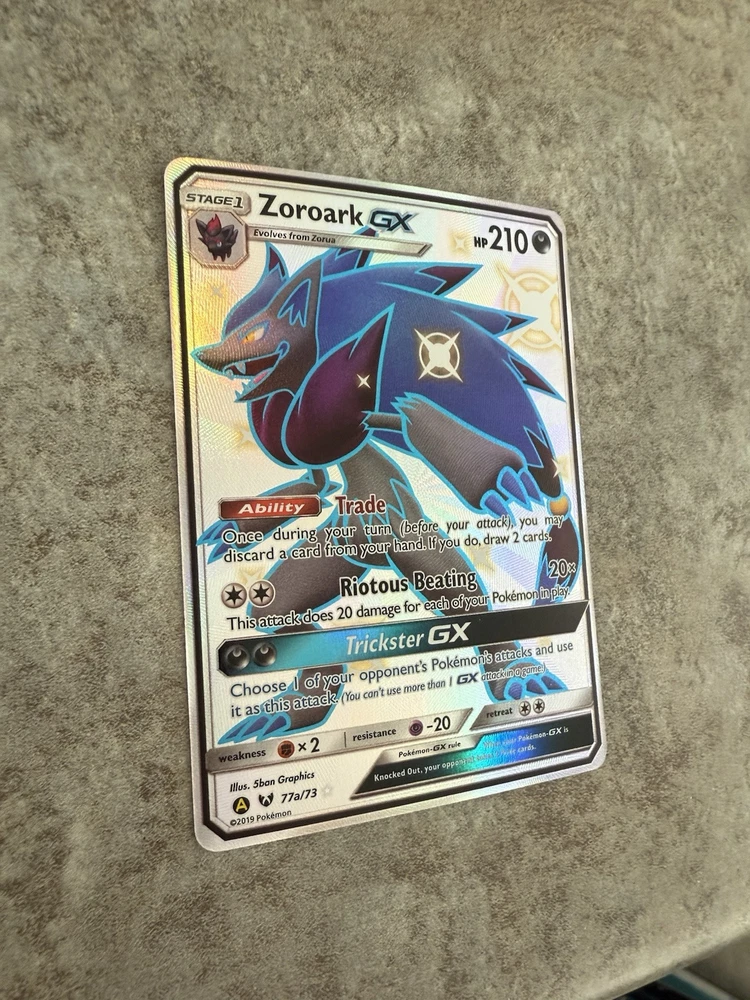 Full art shiny Zoroark GX Promo from Hidden Fates. Near mint card with no damage or wear and never used. Will be adequately protected upon shipment.