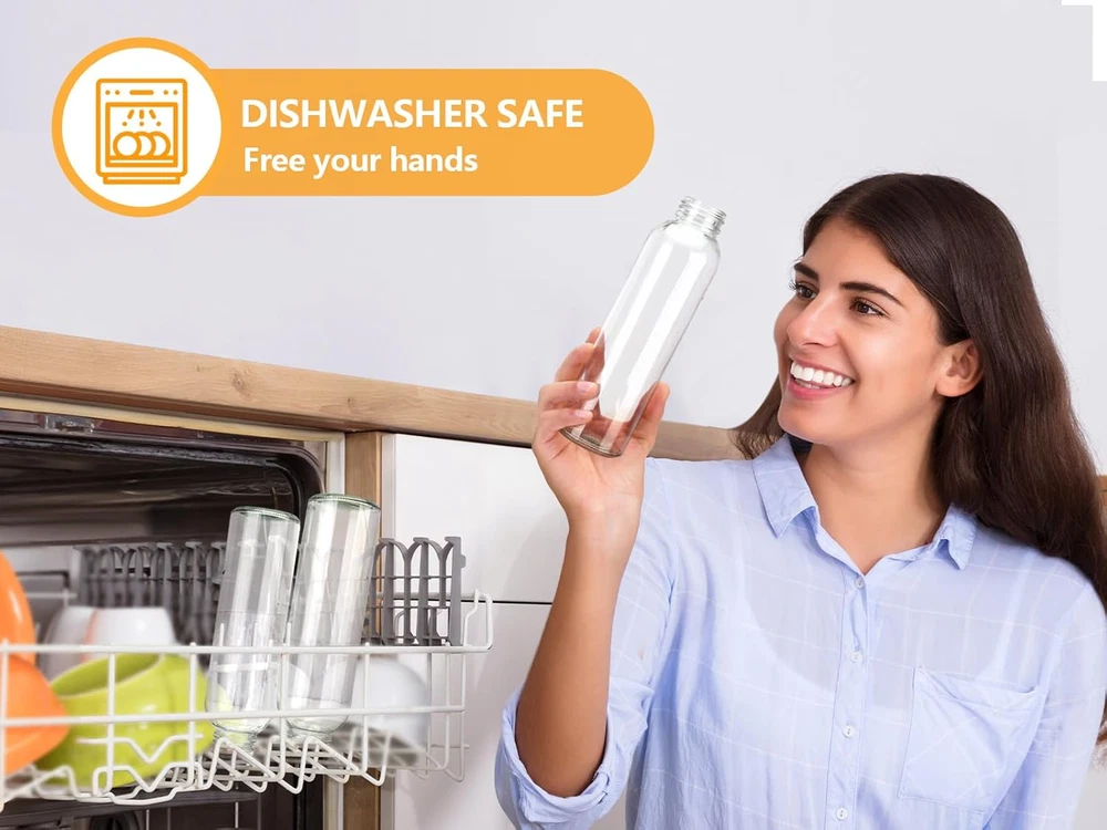 Store New Arrivals Add to Favorite View Feedback Contact Zukro Glass Juice Bottles with Lids for Juicing 18 Oz, Reusable Clear Glass Water Bottles with Stainless Steel Airtight Cap for Refrigerator, 100% Leak Proof, BPA Free, ECO Friendly, Set of 6 Description Item model number Zukro-GB19-18M-6P Style 18oz-Silver-6 counts Bottle Type Reusable Capacity 18 Fluid Ounces Number of Items 6 Theme glass water and juice bottles Batteries Included? No Unit Count 6.0 Count Batteries Required? No Finish glass Brand Zukro Material Glass Age Range (Description) Adult Package Information bottle Finish Type glass Specific Uses For Product Water, juice Material Type Free Polyvinyl Chloride (PVC) Free, Bisphenol S (BPS) Free, Lead Free, Bisphenol A (BPA) Free Reusability Reusable Item Package Quantity 6 Item Weight 9.6 ounces Special Features ease of use, Airtight & fridge door friendly, Leak Proof and transparent, fit in cup holder, Dishwasher Safe Special Feature ease of use, Airtight & fridge door friendly, Leak Proof and transparent, fit in cup holder, Dishwasher Safe Part Number Zukro-GB19-18M-6P Sport homemade juice Color Silver-6 counts Shape Round Recommended Uses For Product juice storage, water, smoothie, juicing Manufacturer Zukro Product Dimensions 2.6"W x 8.5"H Product Care Instructions Dishwasher Safe Size 18 oz DURABILITY & REUSABLE & HEALTHY QUALITY: Zukro 18 oz juicing bottles are made from premium quality food-safe durable thick glass with superior chemical and impact resistance, which is BPA and Lead free. These reusable glass bottles with lids are a sustainable choice for enjoying your favorite juices and supporting a healthier planet. The juicing bottles reusable glass are designed to be super tough and withstand a long time of use. Say goodbye to disposable cups and contribute to a greener environment. GLASS BOTTLES FOR JUICING AND MORE: Durable stainless steel lids with air and water-tight seals, so it’s completely airtight to keep your beverage fresh without any worry of spills. Throw this glass water bottle in your bag or car and get a healthy start to your day with a juice, smoothie, brew, ice tea, iced coffee, nut milk, milkshakes, Kombucha or water. The 100% leak proof glass bottle will never leave a leaky mess no matter how you place it. The clear glass helps you quickly spot the drink you're in the mood for. STAY HYDRATED WHEREVER YOU GO: The slim and portable design means you can take your glass juice bottles with cap everywhere, perfectly for garden parties, homemade drinks, weddings, picnics, school, work, gym, fitness, yoga and beach trips. Easily store in the fridge, lunch bag or car cup holder. These Zukro glass water bottles is dishwasher safe, easy to fill and clean SAVE MONEY WITH THIS VALUE PACK: Juicing Kit Bundle includes : 6 pack clear 18 oz Zukro glass juice bottles with airtight lids, a bottle cleaning brush for easy hand washing, a funnel helps you pour liquids inside the glass containers, an ice stick tray makes long and narrow ice cubes for adding ice easily, extra 1pc stainless steel airtight lids to ensure that the reusable glass bottles always remain sealed. Get our juicing bottles in bulk packs as gift for your whole family and friends. PROMPT AFTERSALES SERVICE: The easy care, dishwasher safe Zukro 18 oz glass juice bottles set will surely please you! We focus on every detail of our products and safe packaging. If, for any reason, you are not satisfied with the juicer bottles, Please contact us Product Description Zukro glass water bottles for multi-purpose, available in 10 oz 18 oz and 24 oz The video showcases the product in use. The video guides you through product setup. The video compares multiple products. The video shows the product being unpacked. hero-video Merchant Video Glass bottles are the best storage container for water and your home made juice Maximum effort just for you enjoy juicing at home Great for refrigerator Slim and compact design Space saving Easy to grip Easy of use Wide mouth for easy filling Easy to fill ice cube and you are ready to go Easy to clean Thick glass Stainless steel airtight lid 100% leak proof Packable and no spill mess Keep juice fresh longer hour Non plastic contact Thoughtful jucing kits Narrow ice tray to make long ice stick Funnel for preventing filling spillage Cleaning brush for through cleaning Extra replacement lid for backup Juice Prepping Fridge door friendly compact and slender design easy to store in fridge (DO NOT PUT IN FREEZER SECTION) packable Leakproof and packable easy to hold and grip convevient to take out Pure taste no toxin Everything tasts better in glass glass is best storage for all beverage to keep flavour 1 Corrugated box 2 Save space in frige 3 airtight leakproof 4 Sharing with family 5 Won't absorb odors Zukro Bestselling Bottles & Tumblers & Jugs Add to Cart Add to Cart Add to Cart Customer Reviews 4.7 out of 5 stars 744 4.6 out of 5 stars 8 4.5 out of 5 stars 22 4.5 out of 5 stars 17 — 4.2 out of 5 stars 656 5.0 out of 5 stars 1 Price $22.49 $ 22 . 49 $10.99 $ 10 . 99 $21.99 $ 21 . 99 $18.99 $ 18 . 99 $25.99 $ 25 . 99 $18.99 $ 18 . 99 $7.99 $ 7 . 99 Capacity 10oz/18 oz 6pack/10pack/12pack 16oz/18oz juice bottle sleeve 16oz glass juice jar 8pk/12pk 13 oz 10 oz 8pack/12pack/16pack 32 oz for Zukro 18/24oz glass bottle Lid Type Screw on / Screw on Press in Screw on Press in Screw on Material Glass with airtight lid Food grade silicone Glass with airtight lid glass Glass with airtight lid Borosilicate glass with bumper Stainless steel 18/8 Hours Cold / / / / / / / Leak proof YES / YES YES YES Spill proof YES Dishwasher Safe ✔ ✔ ✔ ✔ ✔ ✔ ✔ Sweat Proof ✘ ✘ ✘ ✘ ✘ ✘ ✘ Fit In Most Cup Holder ✔ ✔ ✔ ✔ ✔ ✔ ✔ ABOUT US We offer the best prices around on high quality products. Our E-store includes media such as books, movies, music and games while offering electronics, toys, sporting apparel, clothing, tools, general home, garden items and more. SHIPPI