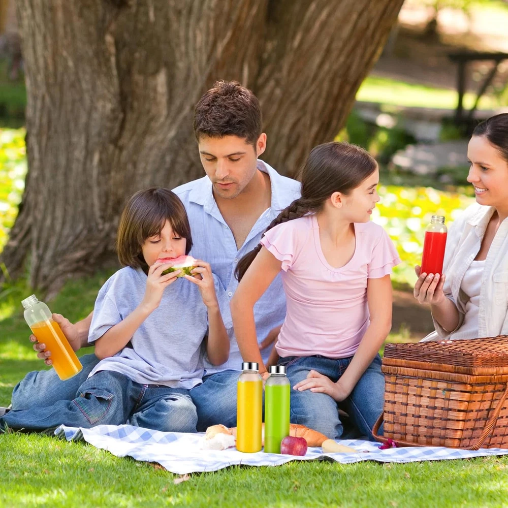 Zukro 18 Oz Glass Juice Bottles with Lids Reusable Clear Water Bottles for Juicing