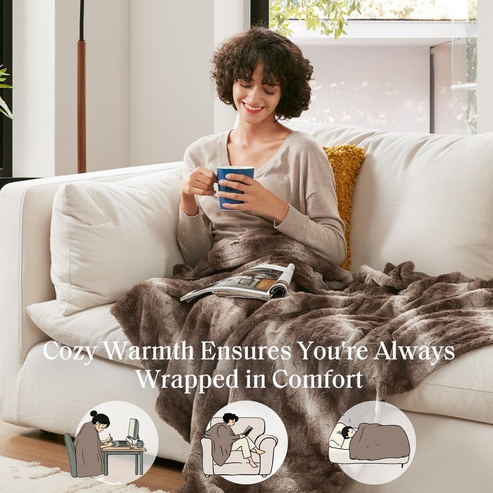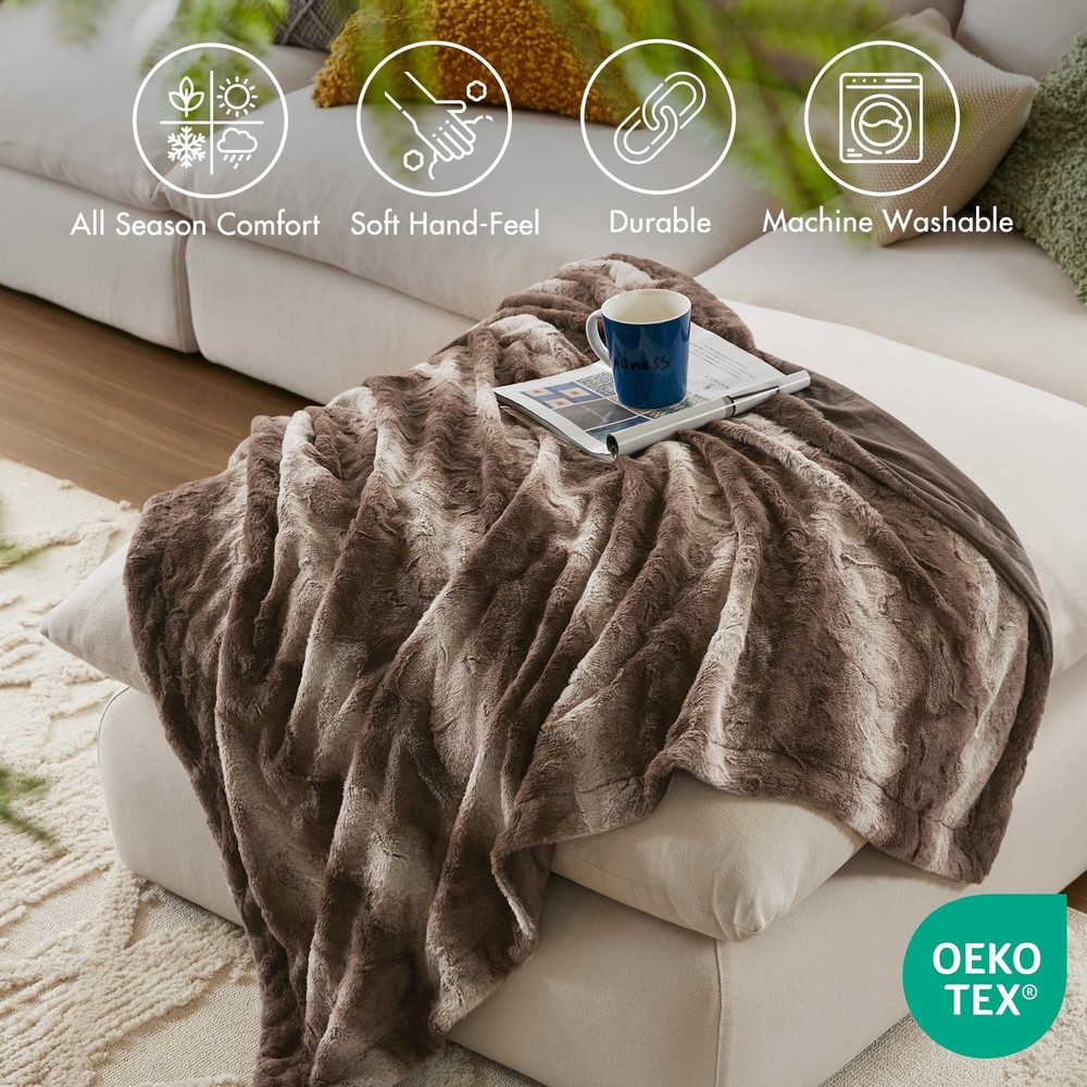 The Zuri Blanket features a luxuriously soft faux fur and reverses to a solid luxe microfur. A warm blanket and a glamorous accent to your home with ’s Zuri Oversized Faux Fur Throw. Exceptionally soft faux fur mimics the warmth and texture of real fur, while the marble print gives the throw a beautifully stunning look. 1 Throw: 60"W x 70"L Care instructions: machine washable. Minor shedding is expected with faux fur material and should subside after 3-4 washes