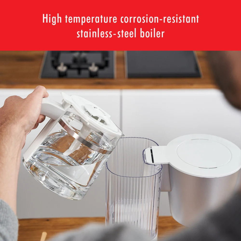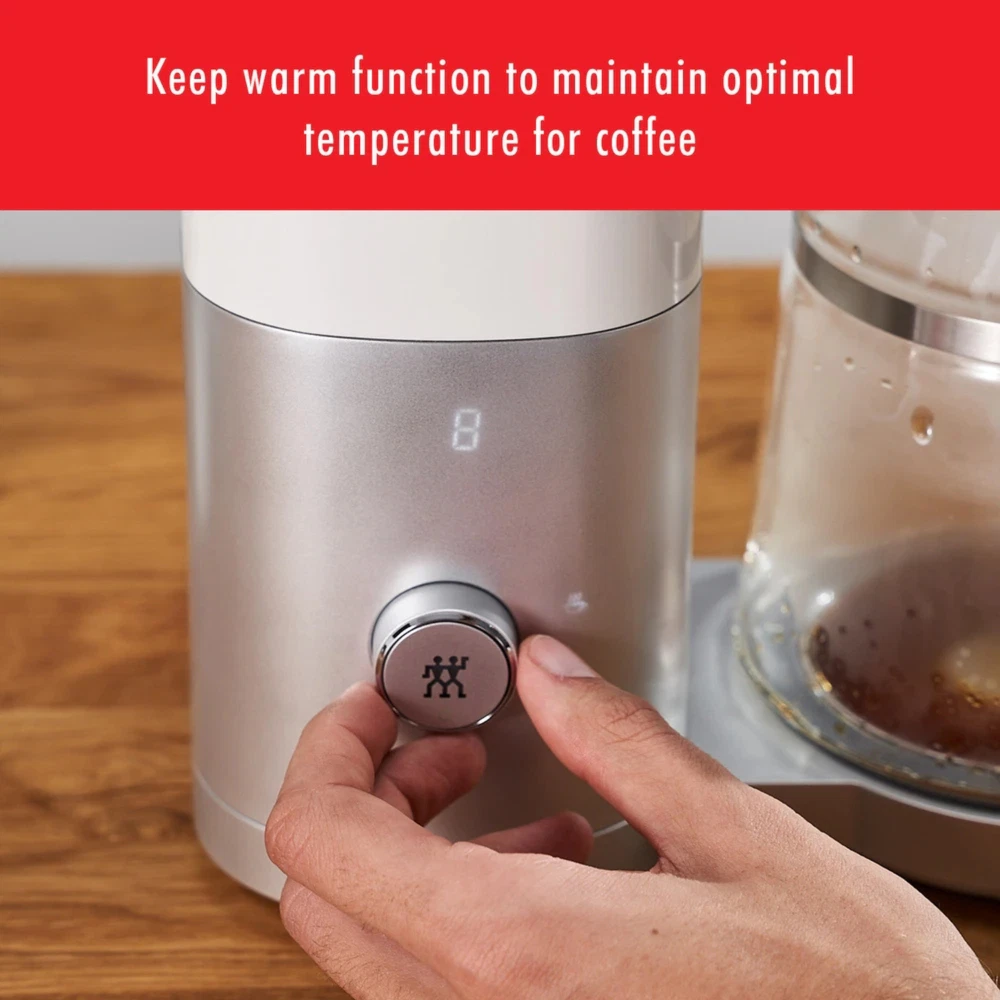 Zwilling Enfinigy Drip Coffee Maker 12-Cup – Glass, SCA Golden Cup, Silver 3-qt This thoughtfully designed 12-cup capacity drip coffee maker ensures the ideal time and temperature setting for brewing the highest-quality coffee. It features a powerful shower head that moistens coffee grounds thoroughly and evenly, a blooming function that develops a smoother, less sour-flavored coffee, and a high-temperature, corrosion-resistant stainless-steel boiler, superior to copper and aluminum boilers, that will never alter the flavor of brewing water. This sleekly designed coffee maker is available in black or silver. The innovative ZWILLING family of coffee electrics delivers full bodied, smooth tasting brews for coffee lovers with discerning tastes. In addition to the coffee maker, the powerful burr grinder grinds coffee beans to a uniform size, and the superior-quality milk frother produces creamy, soft, microbubble foam. This sleek, easy-to-use trio of products turns out coffeehouse-worthy drinks at the press of a button. Unique Stainless-Steel Boiler: Highly corrosion resistant and won’t alter the taste of brew water, as compared to copper and aluminum boilers. Generous 12-cup capacity glass carafe Wide stainless-steel shower head for even coffee ground moistening, a key first step in the blooming process to extract maximum flavor from coffee grounds Blooming function – releases carbon dioxide from coffee grounds before brewing begins for a smoother, less sour taste Integrated drip circulator for optimal coffee circulation when dripped into pot Keep warm function to maintain optimal coffee temperature for 30 minutes Timer function that lets you set when you want your coffee to start brewing Cleaning alert function notifies you when it’s time to descale your coffee maker Available in black or silver Awarded the prestigious SCA Golden Cup Standard, the Specialty Coffee Association’s highest prize for quality brewers. Shipping We offer FREE shipping on all orders! We ship within Three business days of payment, usually sooner. We use a selection of shipping services such as UPS, FedEx, USPS etc. We only ship to the lower 48 states, no APO/FPO addresses or PO Boxes allowed. Local pickups and combined shipping options are not provided at this time. Return You can return a product for up to 30 days from the date you purchased it. Any product you return must be in the same condition you received it and in the original packaging. Please keep the receipt. Payment We accept payment by any of the following methods: PayPal Please pay as soon as possible after winning an auction, as that will allow us to post your item to you sooner! Feedback Customer satisfaction is very important to us. If you have any problem with your order, please contact us and we will do our best to make you satisfied. Contact Us If you have any queries, please contact us via ebay. We usually respond within 24 hours on weekdays. Please visit our eBay store to check out other items for sale! Thank you for shopping at our store.