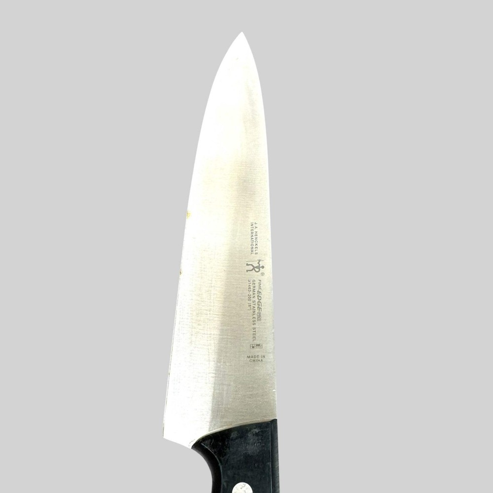 Zwilling Henckels Fine Edge Pro Chef Knife | 8 Inch Master your kitchen tasks with the Zwilling Henckels Fine Edge Pro Chef Knife, an 8-inch blade designed for precision and versatility. Perfect for chopping, slicing, and dicing, this knife delivers professional results for any recipe. The stainless steel blade is honed to a fine edge, ensuring clean, effortless cuts every time.The full-tang construction is complemented by an ergonomic, triple-riveted handle for superior balance and control. Whether you're slicing vegetables, carving meats, or mincing herbs, this knife provides a comfortable and reliable grip, even during extended use. Its durable design is built to handle the demands of everyday cooking.As part of Henckels' trusted lineup, this pre-owned knife offers exceptional quality and value while promoting sustainable kitchen practices. A must-have tool for home cooks and professionals alike. Please see specifications for specific condition information. Zwilling Henckels Fine Edge Pro Chef Knife | 8 Inch Master your kitchen tasks with the Zwilling Henckels Fine Edge Pro Chef Knife, an 8-inch blade designed for precision and versatility. Perfect for chopping, slicing, and dicing, this knife delivers professional results for any recipe. The stainless steel blade is honed to a fine edge, ensuring clean, effortless cuts every time. The full-tang construction is complemented by an ergonomic, triple-riveted handle for superior balance and control. Whether you're slicing vegetables, carving meats, or mincing herbs, this knife provides a comfortable and reliable grip, even during extended use. Its durable design is built to handle the demands of everyday cooking. As part of Henckels' trusted lineup, this pre-owned knife offers exceptional quality and value while promoting sustainable kitchen practices. A must-have tool for home cooks and professionals alike. Please see specifications for specific condition information. × × × × × Buy now and save! Shipping info Click the Shipping & Payments tab above the listing description for more info Click the Shipping & Payments tab above the listing description for more info! Additional delivery notes PICK UP OPTION Sorry, our items are NOT available for pick-up. PAYMENT Immediate payment is required upon selecting "Buy It Now" or upon checking out through the cart. We accept payment via U.S. PayPal accounts and all Major Credit Cards, Debit Cards & Google Pay. We are legally required to collect sales tax in those states and localities where we maintain a physical presence (nexus). The applicable amount of sales tax charged to an order will be calculated based on the shipment destination's state and local sales tax laws. Thank you for shopping with us on eBay! Additional Information No additional information at this time Ask seller a question You might also like Egg Wooden Serving Board - Threshold Flex Strainer Sink Strainer & Stopper 2-N-1 Fits Most 3.5” Drains & Disposals, C Pier 1 Reflections Crackle Goblet | 2 Pack BELLA 1.7 Liter Glass Electric Kettle | LED Illuminated & Cordless Contact To contact our Customer Service Team, simply click the button here and our Customer Service team will be happy to assist. Ask seller a question © Kitchen Switchen Shipping & Payments Click the Shipping & Payments tab above the listing description for more info Payment Accepted Payment Methods Immediate payment is required upon selecting "Buy It Now" or upon checking out through the cart. We accept payment via U.S. PayPal accounts and all Major Credit Cards, Debit Cards & Google Pay. We are legally required to collect sales tax in those states and localities where we maintain a physical presence (nexus). The applicable amount of sales tax charged to an order will be calculated based on the shipment destination's state and local sales tax laws. Thank you for shopping with us on eBay! Returns Returns are accepted Items must be returned within 30 days of the auction ending Buyer will pay for return shipping. eBay integration by