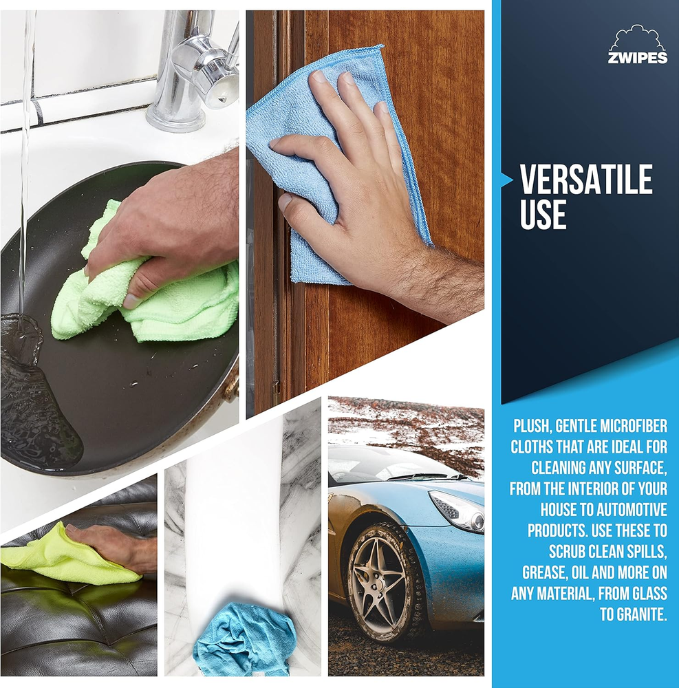 Store New Arrivals Add to Favorite View Feedback Contact Zwipes Microfiber Cleaning Cloths, 48 Pack Description Item model number 948 Style Compact Number of Items 1 Pattern Solid Theme No Theme Unit Count 48.0 Count Product Dimensions 12"L x 0.1"W Brand Zwipes Material Microfiber Age Range (Description) All Ages Is Discontinued By Manufacturer No Manufacturer Zwipes Customer Package Type Standard Packaging Item Weight 1.6 ounces Special Feature Lint Free Color Assorted Global Trade Identification Number 00726843006381 Shape Square Model Name 948 Fabric Type Microfiber Product Care Instructions Machine Wash Size 48-pack Plush, super-soft microfiber cloths, ideal for cleaning tasks in the home, garage, office, and more Constructed with 110,000 fibers per square inch, allowing you to clean with or without chemicals or detergents Lint-free, streak-free cleaning; with a non-abrasive design that won't scratch surfaces, paints, or clear coats Absorbs eight times its weight in water, and dries in half the time of standard towels Can be washed and reused hundreds of times, allowing you to save money on paper towels and costly cleaners Each cloth measures 12" x 16", and each pack ships in Certified Frustration-Free Packaging Zwipes are constructed with a super-soft plush microfiber design that safely and effectively cleans surfaces with or without chemical detergents. They hold eight times their weight in liquid, can be washed hundreds of times, and will dry in half the time of ordinary towels. Zwipes are ideal for providing a streak-free, lint-free shine on household and automotive surfaces; and can also easily clean up spills, grease, oil and more. Each cloth measures 12" x 16". ABOUT US We offer the best prices around on high quality products. Our E-store includes media such as books, movies, music and games while offering electronics, toys, sporting apparel, clothing, tools, general home, garden items and more. SHIPPING We are always working hard to ensure your package arrives as soon as possible. Please understand that some factors like weather, high postal traffic, and the performance of shipping companies are outside of our control. We offer free shipping to the lower 48 states and ship within 2 business days of payment, usually sooner. We do not accept P.O. Boxes. Please provide a physical address. RETURNS We offer a 30-Day Return Policy on items which you are not completely satisfied with. You have the option for a full-refund or an exchange of the item. No returns are available on items shipped outside of the USA. PAYMENT We accept PayPal. CONTACT US This page content is yet to come Please ad us to your favorite seller and visit again later Thank You CUSTOMER SATISFACTION We try our very best to make sure every customer is completely satisfied. If there's a problem, message us! We're happy to help.