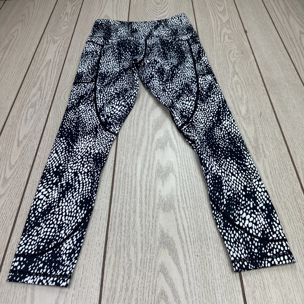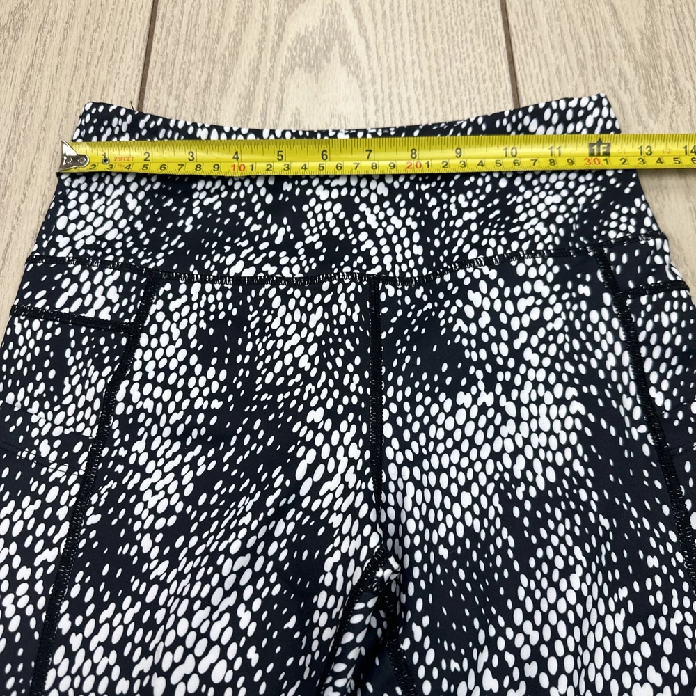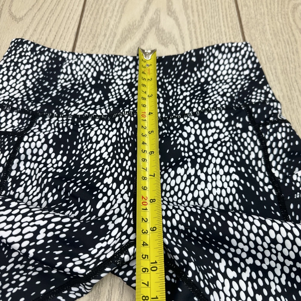 The Zyia Cobra Metallic Pocket Light n Tight 20" Capri Leggings are a pair of women's activewear pants made of polyester and spandex. They feature an animal print pattern with a snake theme and a Venom character. The leggings have a pull-on closure, 20-inch inseam, and skinny leg style with compression in the leg area. They also have pockets and are machine washable. The Zyia Light n Tight product line is designed for athletic fit and performance, suitable for gym & training, yoga, and running & jogging.
