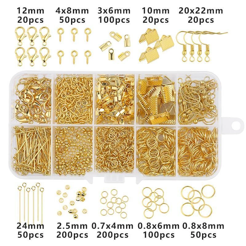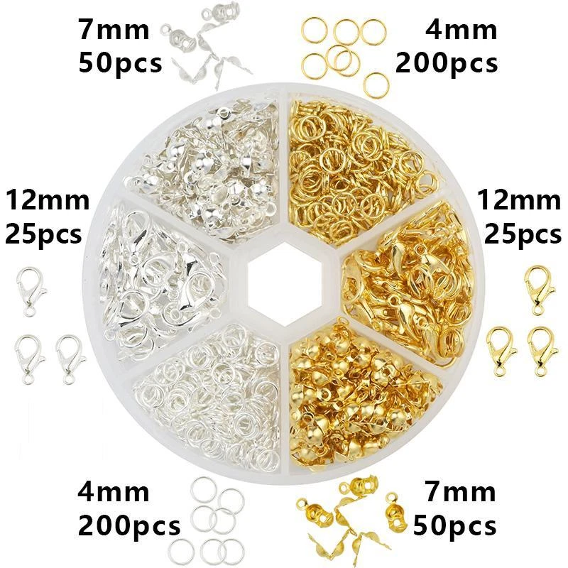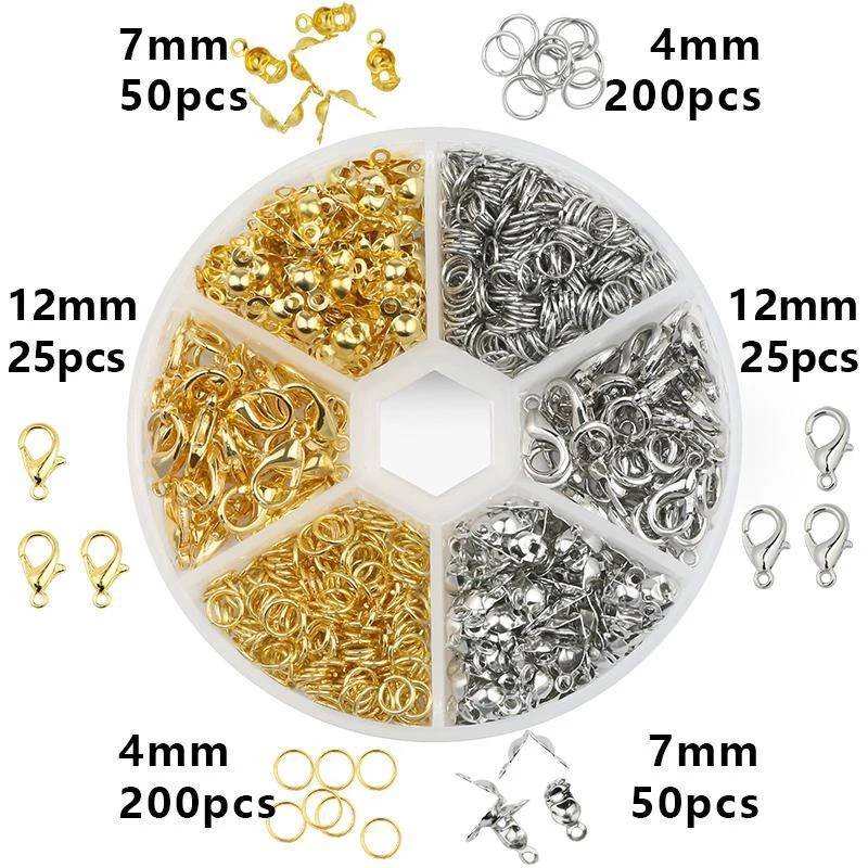 Free and fast shipping, Shipping time takes up to 1-7 Business Days 30 DAYS RETURN EASY PAYMENT via Credit Card, Google Pay, PayPal, PayPal Credit... a Set Alloy Accessories Jewelry Findings Earring Making Kit Lobster Clasp Open J VARIETY SIZES The jewelry making supplies contains a great selection of sizes jewelry accessories for jewelry construction. They are the most popular sizes that are ideal for making my bracelets, repair necklaces and jewelry related projects HELPFUL ASSEMBLY TOOLS Jewelry tools set with a nose pliers ,a tweezer and a bonus jump ring opener. The brass ring makes opening and closing the rings so much easier than holding two pliers. You can hold your chain with the same hand you have the ring tool on, and your pliers in the other hand and assemble away with ease NICE CONTAINER BOX All jewelry accessories are packed in a handy container to keep them separate and easy to find. The storage container is designed with the lids that can be opened and snapped shut individually as well as all together. PERFECT FOR JEWELRY MAKING The silver and gold open jump rings and clasps set are suitable for many projects like linking small chain and earrings, making bracelets, repair necklaces, making chain mail and other jewelry related projects REVIEWS The product came very well packaged. I'm very happy. thank you for everything. Seller strongly recommended. This is great! I definitely recommend! Product looks amazing Delivery was fast. Excellent seller, great communication. I advise everyone to buy it!